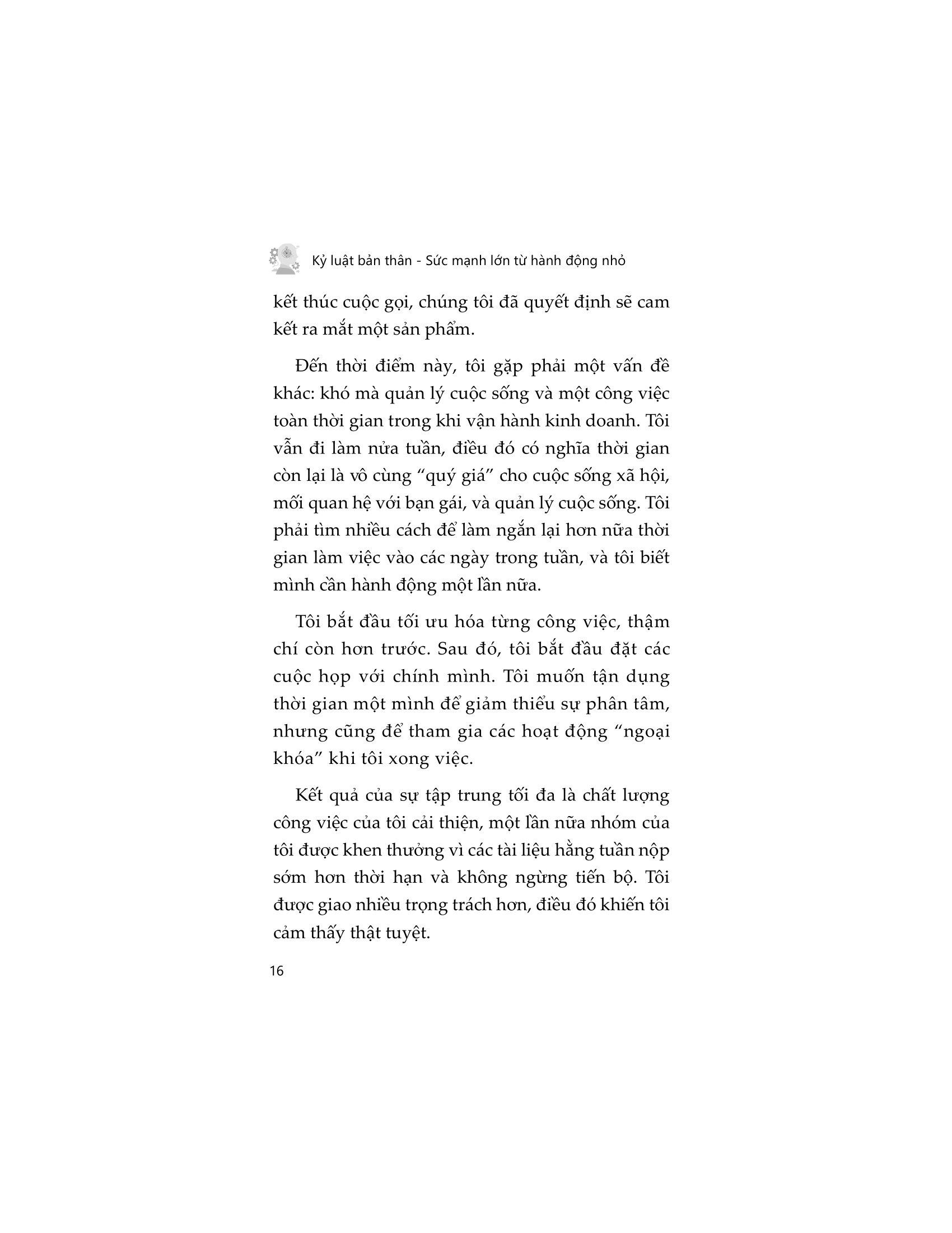 Trong cuốn sách KỶ LUẬT BẢN THÂN – SỨC MẠNH LỚN TỪ HÀNH ĐỘNG NHỎ, bạn sẽ tìm thấy: