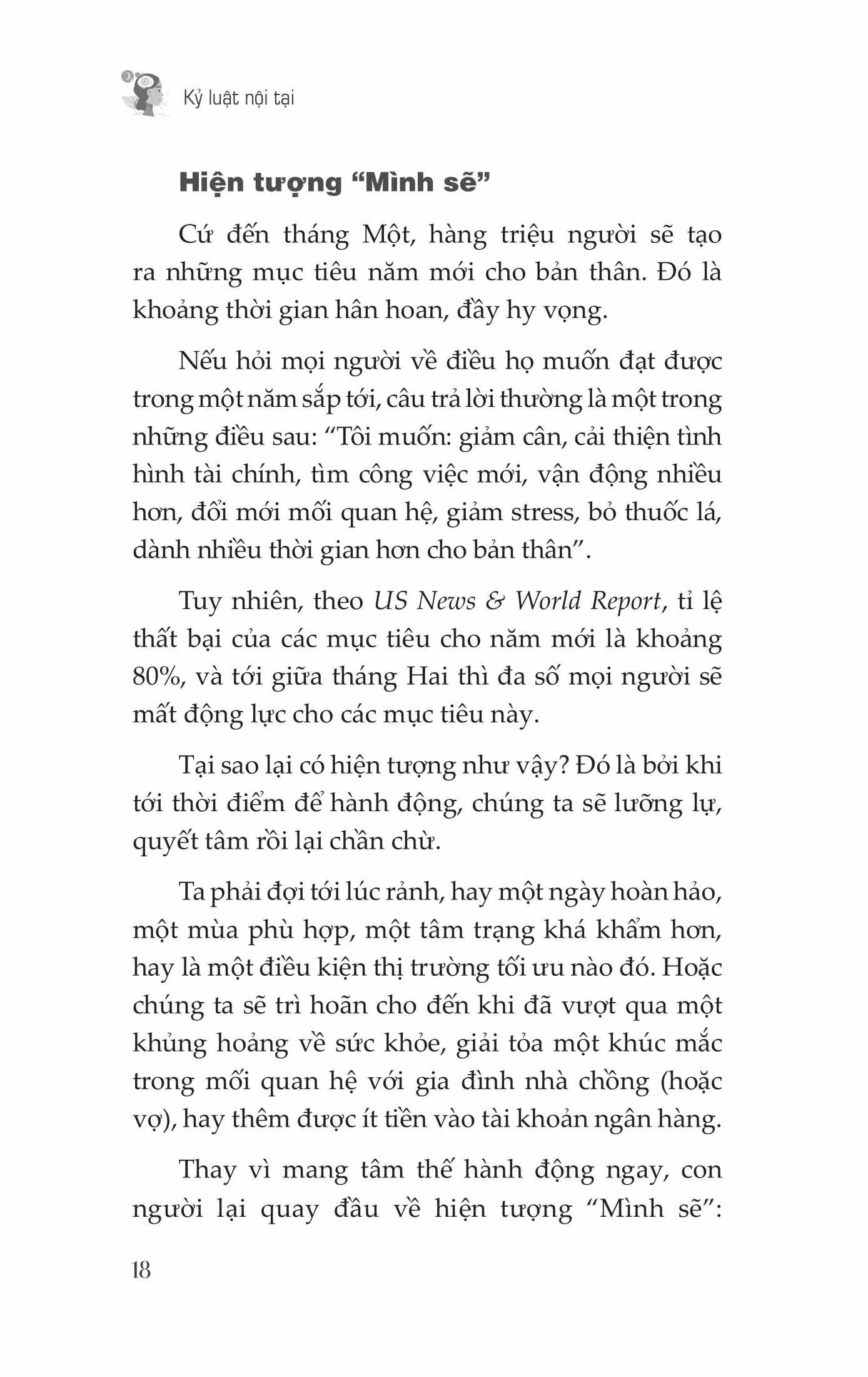 Cứ đến tháng Một hàng năm, hàng triệu người sẽ tạo ra những mục tiêu năm mới cho bản thân với vô số những dự định muốn làm. Tuy nhiên, theo US News & World Report, tỉ lệ thất bại của các mục tiêu cho năm mới là khoảng 80%, và tới giữa tháng Hai thì đa số mọi người sẽ mất động lực cho các mục tiêu này. Tại sao lại có hiện tượng như vậy? Đó là bởi khi tới thời điểm để hành động, chúng ta sẽ lưỡng lự, quyết tâm rồi lại chần chừ.