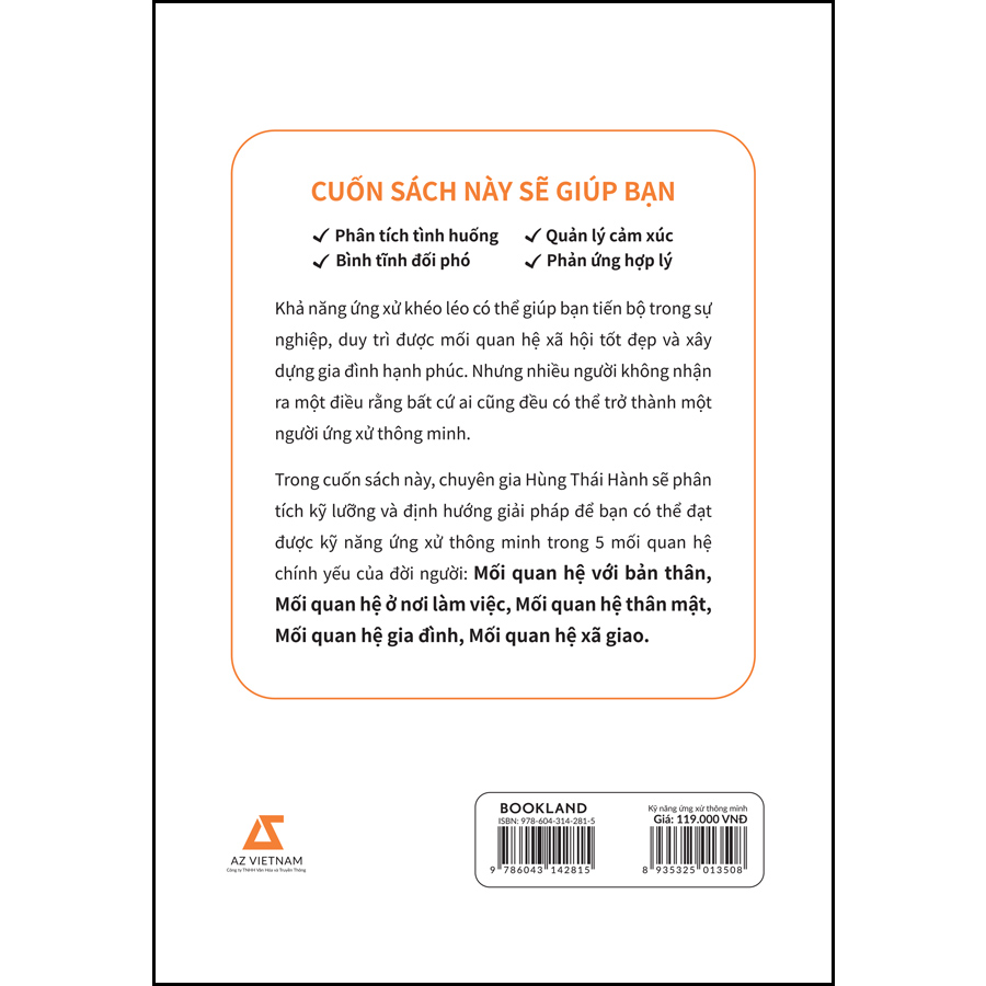 Một trong những kỹ năng quan trọng nhất của con người là kỹ năng ứng xử. Khi ứng xử thông minh, bạn không chỉ thuận lợi đạt được mục tiêu mà còn gây thiện cảm và tạo ra các mối quan hệ có ích với những người xung quanh. Dù bạn đang ở vị trí nào trong xã hội, là người chủ động hay bị động trong một mối quan hệ, chỉ cần ứng xử thông minh thì bạn đã nắm trong thay chìa khóa để mở ra cánh cửa cơ hội và đi đến thành công,