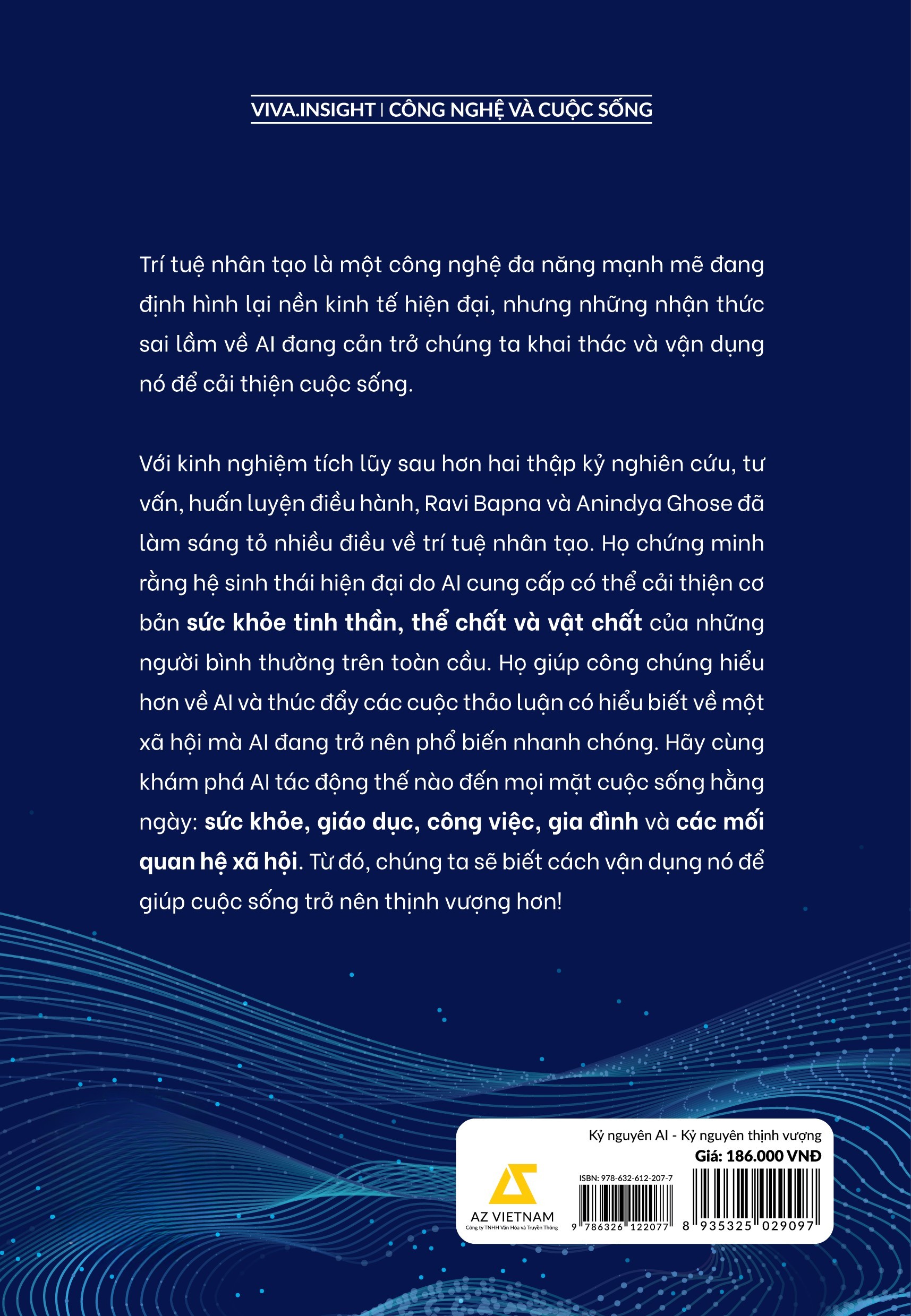 Trí tuệ nhân tạo là một công nghệ đa năng mạnh mẽ đang định hình lại nền kinh tế hiện đại, nhưng những nhận thức sai lầm về AI đang cản trở chúng ta khai thác và vận dụng nó để cải thiện cuộc sống. Với kinh nghiệm tích lũy sau hơn hai thập kỷ nghiên cứu, tư vấn, huấn luyện điều hành, Ravi Bapna và Anindya Ghose đã làm sáng tỏ nhiều điều về trí tuệ nhân tạo. Họ chứng minh rằng hệ sinh thái hiện đại do AI cung cấp có thể cải thiện cơ bản sức khỏe tinh thần, thể chất và vật chất của những người bình thường trên toàn cầu. Họ giúp công chúng hiểu hơn về AI và thúc đẩy các cuộc thảo luận có hiểu biết về một xã hội mà AI đang trở nên phổ biến nhanh chóng. Hãy cùng khám phá AI tác động thế nào đến mọi mặt cuộc sống hằng ngày: sức khỏe, giáo dục, công việc, gia đình và các mối quan hệ xã hội. Từ đó, chúng ta sẽ biết cách vận dụng nó để giúp cuộc sống của mình thịnh vượng hơn!