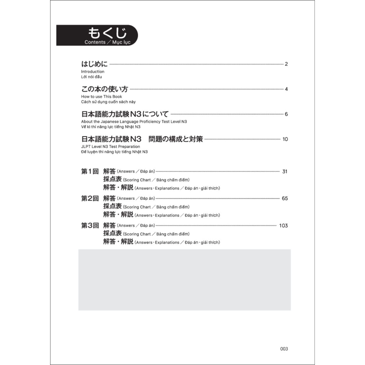 Kỳ Thi Năng Lực Nhật Ngữ N3 - Bộ Đề Luyện Thi (3 Bộ Đề) - Bao gồm 3 đề luyện thi Kỳ thi năng lực Nhật ngữ cấp độ N3. Giải 3 bộ đề