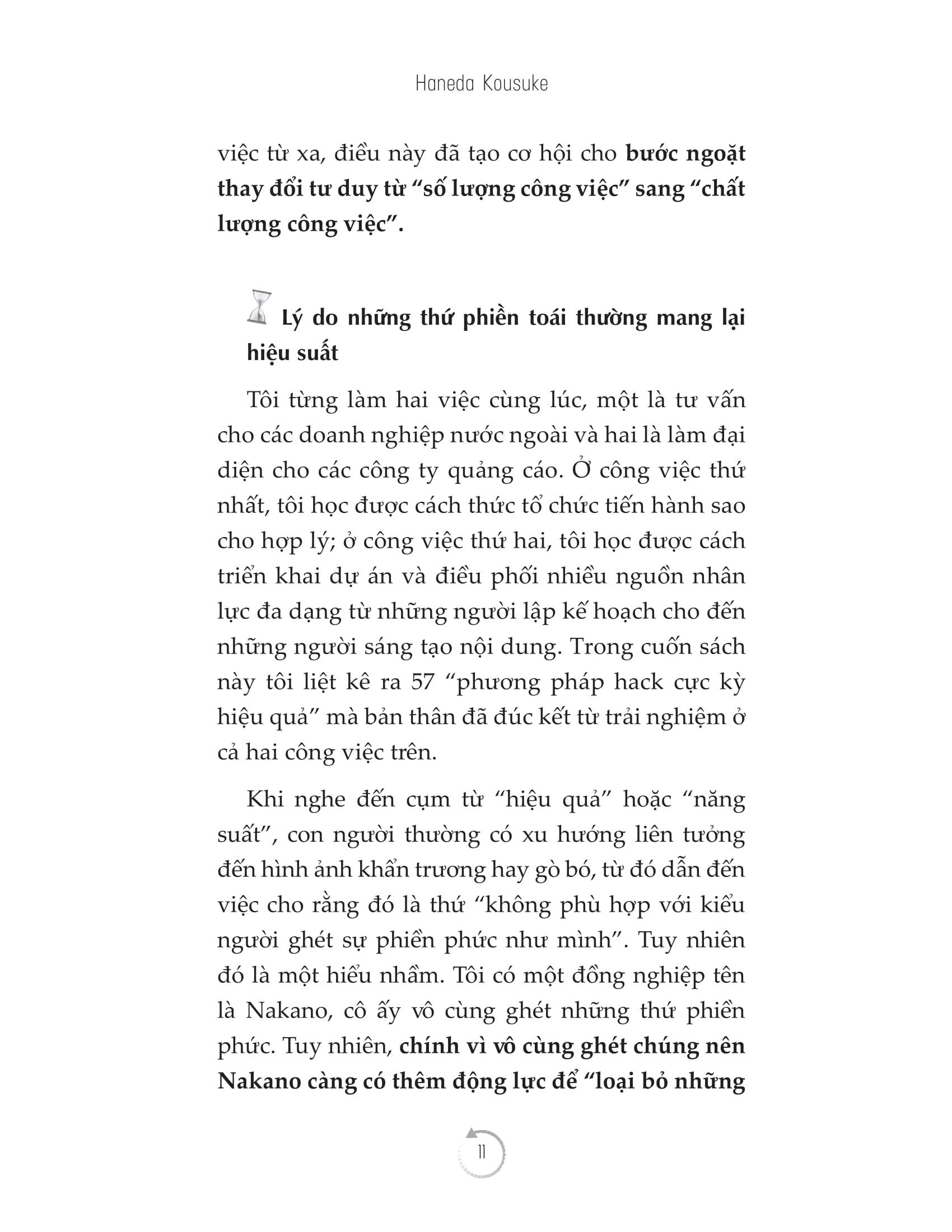 Nếu bạn đang rơi vào những tình huống như trên và cảm thấy mệt mỏi rã rời, điều bạn đang cần lúc này là phương thức để có thể “xử lý một cách thật hiệu quả mà không cần nhiều nỗ lực”. Hãy bắt đầu sắp xếp lại công việc và cuộc sống của bạn với “Kỹ thuật hack thời gian - Kỹ năng hack hiệu suất”, cuốn sách mang đến những phương thức để có thể xử lý công việc một cách hiệu quả mà không cần phải nỗ lực quá nhiều.