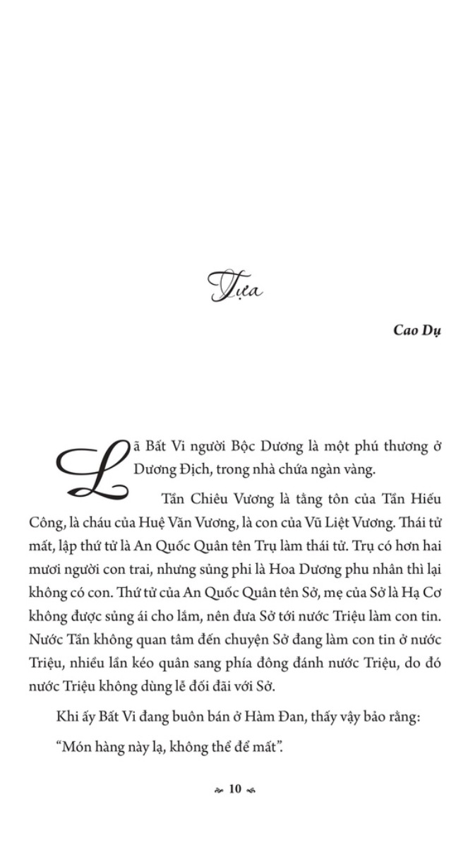 LÃ THỊ XUÂN THU Là một kiệt tác trong kho tàng văn học và triệt học Trung Hoa thời Tiên Tần, do tướng quốc Lã Bất Vi Nước Tần tập hợp môn khách biên soạn.