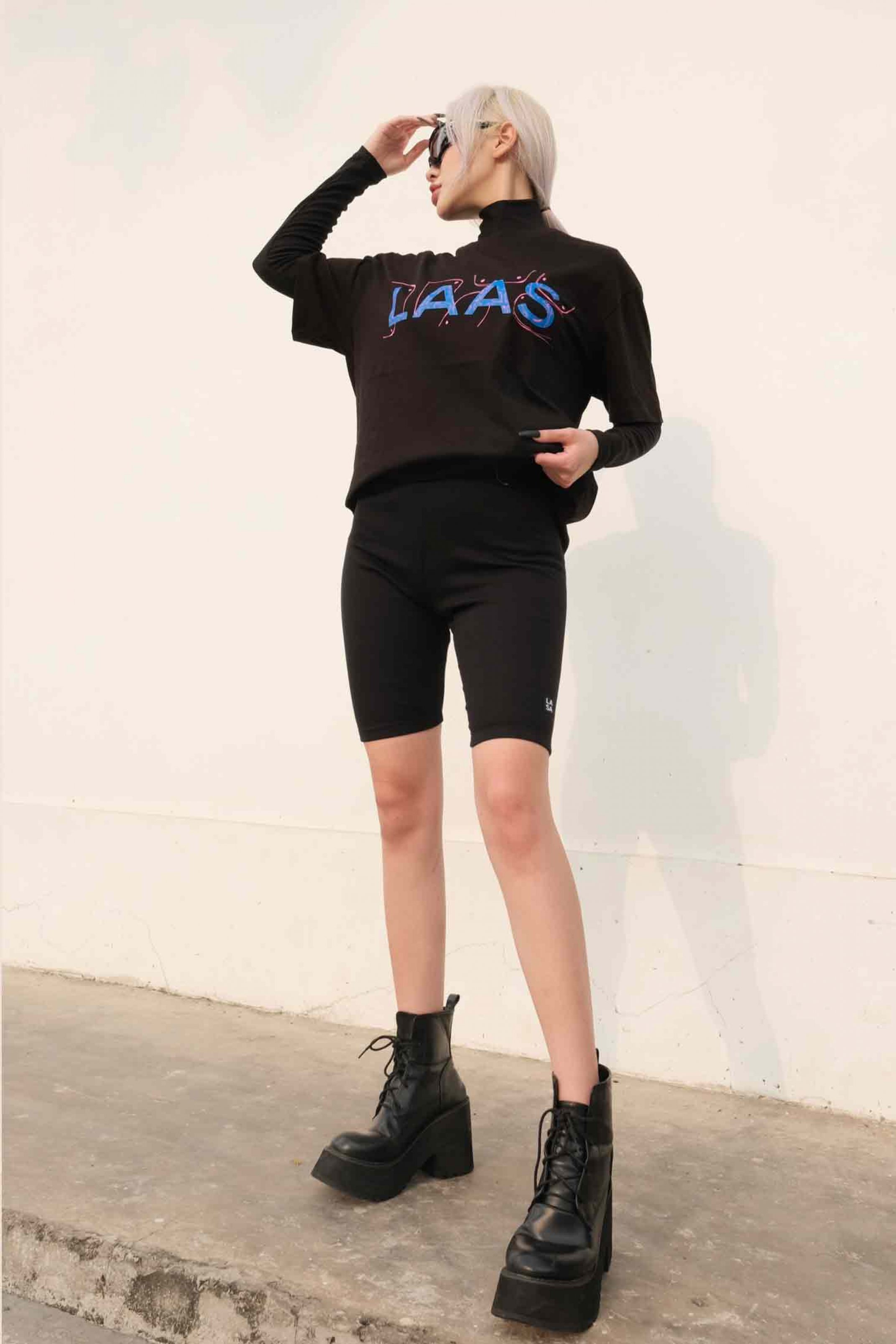 100% COTTON 2 CHIỀU, DÀY DẶN THOÁNG MÁT ÁO MÀU ĐEN FORM RỘNG ĐIỂM NHẤN HÌNH IN CHỮ LAAS MÀU XANH, HỒNG