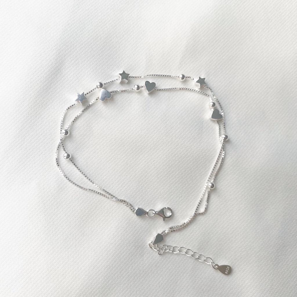 Lắc chân bạc 925 dây đôi gắn sao và bi xinh xắn nhẹ nhàng. Lắc chân mang phong cách Hàn Quốc thời trang, nữ tính nhưng thực sự là mẫu dành cho những cô nàng trendy.