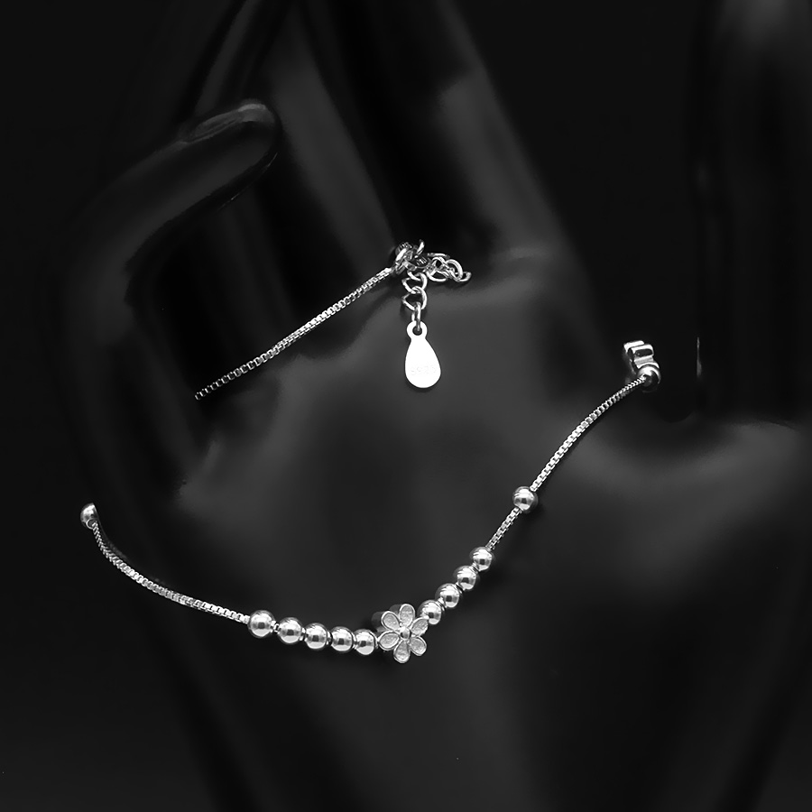 Là con gái, hẳn bạn luôn bị cuốn hút trước những bộ cánh thời trang và những đôi giày sành điệu. Tuy nhiên để làm hoàn hảo hình ảnh của mình trong mắt người đối diện, các bạn cần thêm những món phụ kiện bé bé xinh xinh để điểm tô cho vẻ ngoài thêm ấn tượng. Và hôm nay, Bạc Hiểu Minh  sẽ mang đến các bạn cơ hội sở hữu chiếc lắc chân rất dễ thương, được làm bằng bạc ta. Sản phẩm thích hợp với những bạn gái có phong cách dịu dàng, nữ tính.