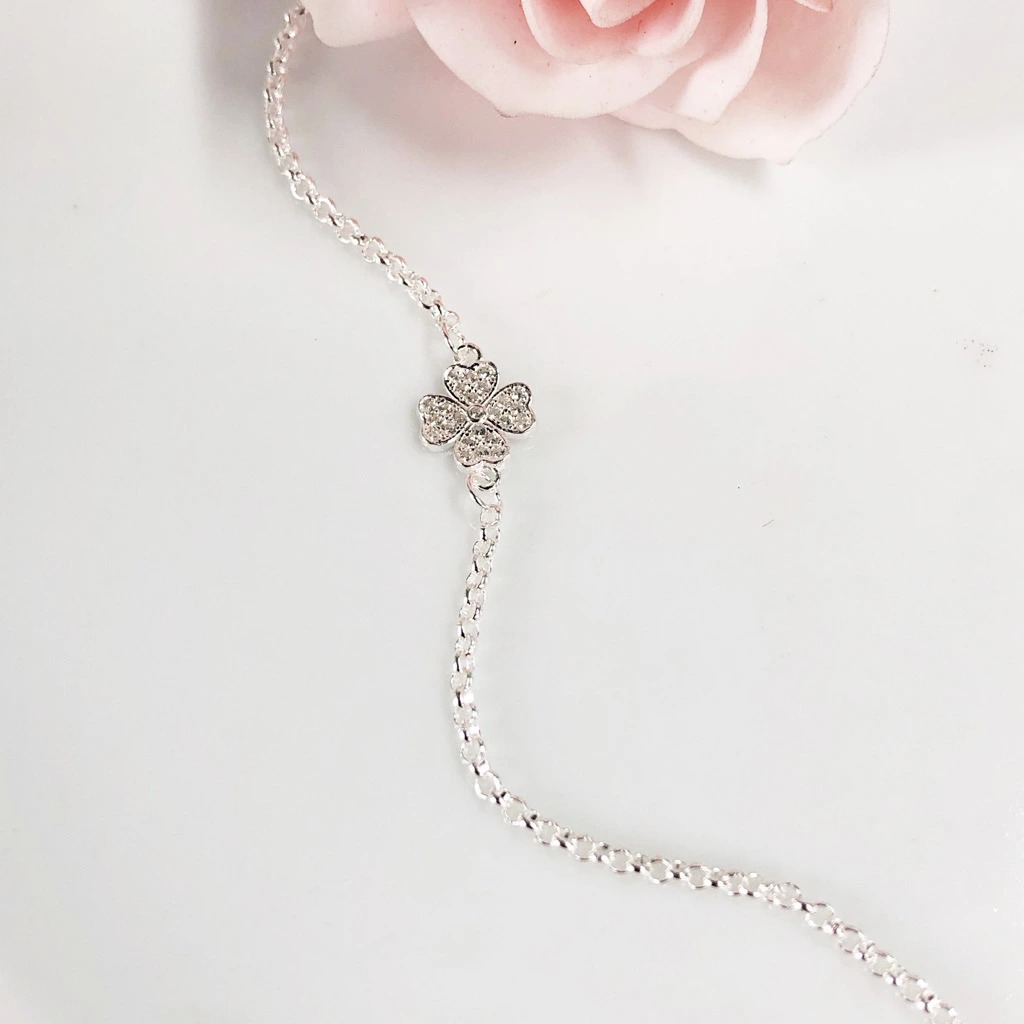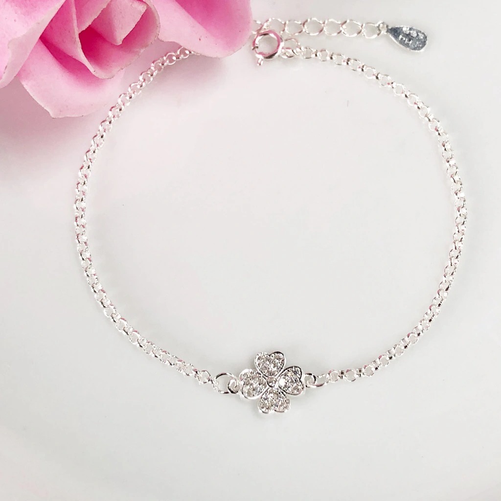 ✨Lắc Tay Nữ Bạc Ta Cỏ 4 Lá Đính Đá May Mắn Bạc Hiểu Minh LTU576
