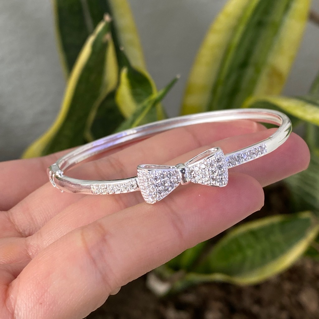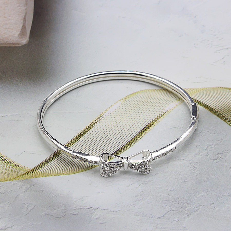 ✨Lắc Tay Nữ Bạc Ta Nơ Xinh Đính Đá CZ Cao Cấp Bạc Hiểu Minh LTU535