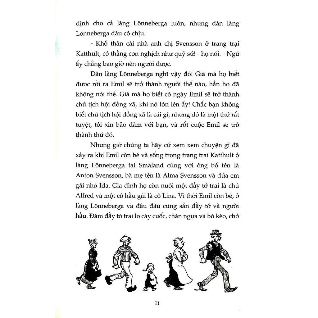 Và thế là, ở giữa nơi thấm đẫm sự bình yên tươi sáng của quê hương Astrid Lindgren, chẳng kém cạnh PippiT ất dài bằng món nghịch tối ngày đó, Emil trở thành một trong bộ đôi sứ giả văn chương được yêu mến nhất của nữ thánh văn học thiếu nhi Thụy Điển.