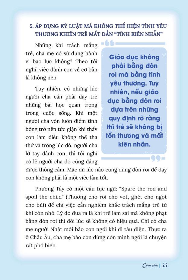 Cuốn sách như một bản tóm tắt và thuyết trình chuẩn mực cho các ông bố bận rộn với trăm ngàn lý do khác nhau để thay đổi cách nhìn nhận của họ về vai trò của người làm cha. Sự thay đổi cách nhìn nhận của người cha và sự tham gia tích cực hơn trong việc nuôi dạy con có thể đạt được kết quả ngay tức khắc, chứ không cần phải “chờ con lớn lên chút nữa”.