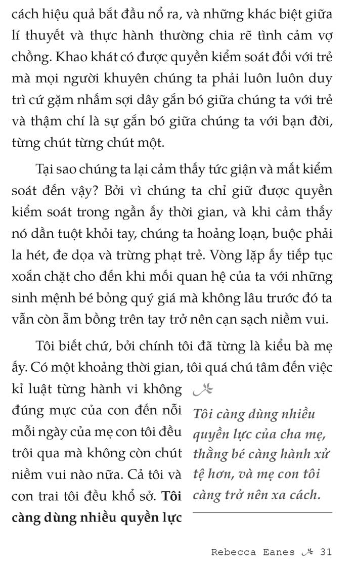 Rebecca Eanes là sáng lập cộng đồng Positive Parenting: Toddlers and Beyond với hơn một triệt thành viên. Cộng đồng này đã giúp hàng ngàn cha mẹ trên toàn thế giới chuyển đổi từ phương pháp làm cha mẹ truyền thống sang làm cha mẹ tích cực, từ đó tìm lại niềm vui và tình yêu trong hành trình nuôi dạy con cái.