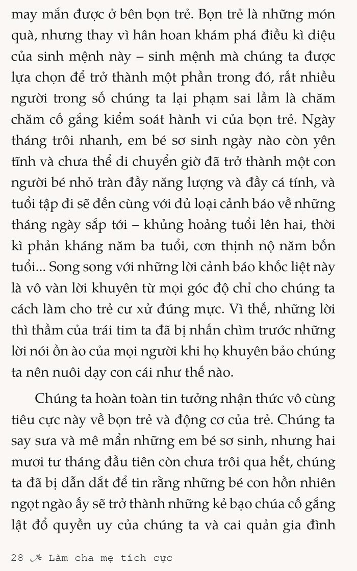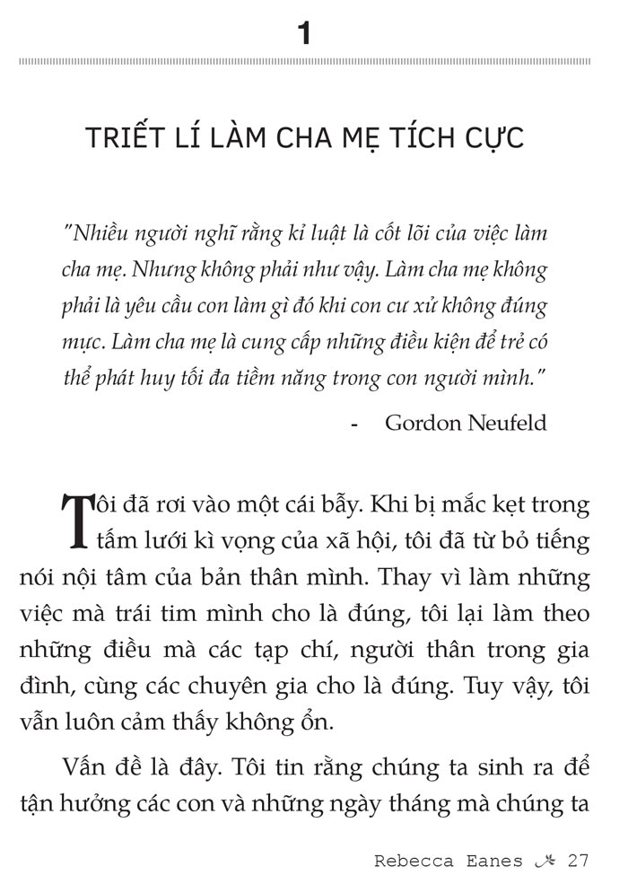 Phần sau của sách lại giúp phụ huynh hiểu rằng: “Chúng ta muốn nuôi dưỡng những đứa trẻ suy nghĩ tích cực, bản thân chúng ta phải học cách trở thành những người suy nghĩ tích cực”.