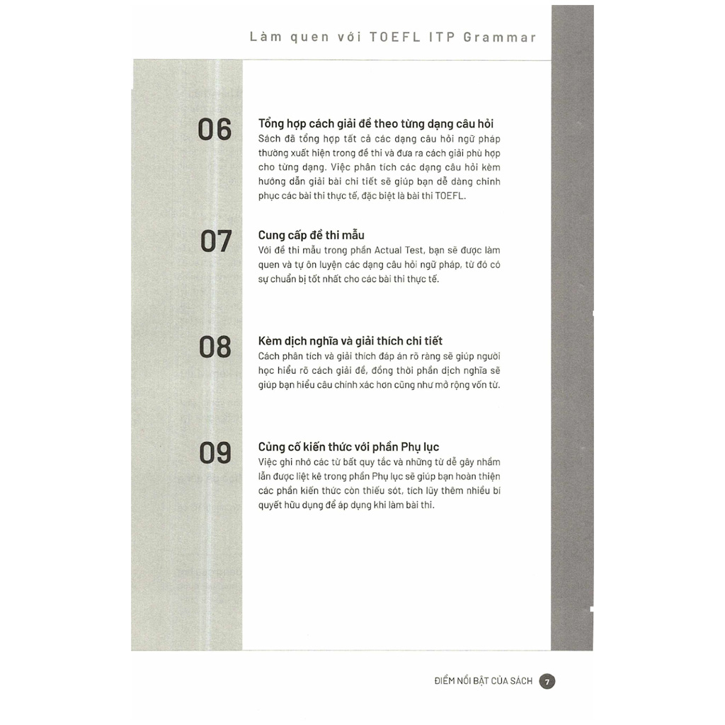 Làm quen với TOEFL ITP Reading: hệ thống các kiến thức ngữ pháp liên quan đến kỹ năng đọc hiểu tiếng Anh, đưa ra lộ trình học tập hợp lý giúp người học từng bước