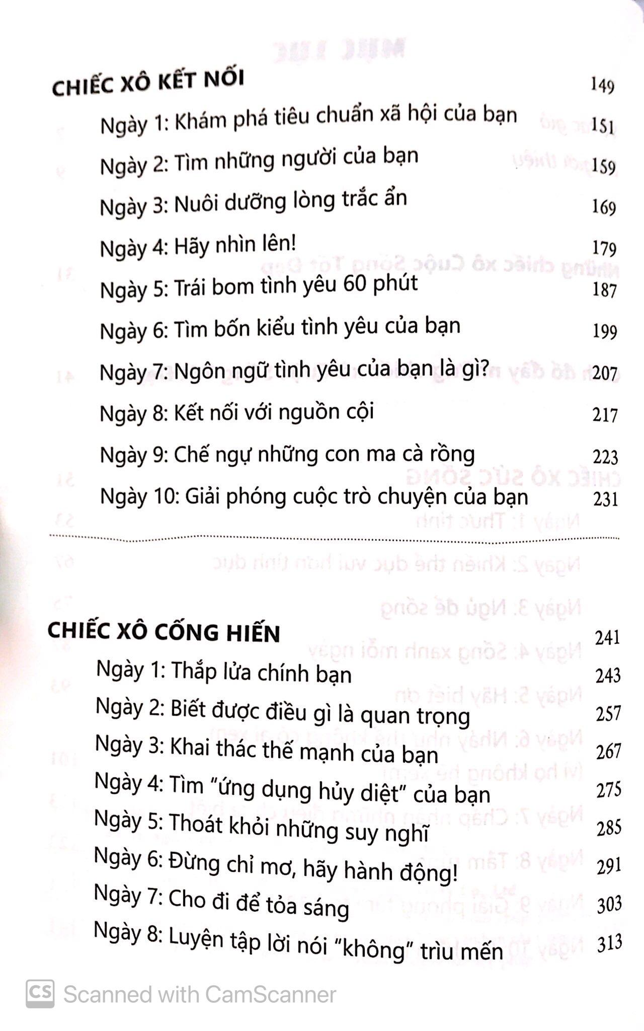 Hãy nghĩ về cuộc đời của bạn như ba chiếc xô. Chiếc xô đầu tiên được gọi là Sức Sống, nói đến trạng thái tâm trí và cơ thể bạn. Chiếc xô thứ hai là Kết Nối, nói đến những mối quan hệ. Chiếc xô thứ ba là Cống Hiến, nói đến cách bạn cống hiến cho thế giới này. Những chiếc xô này càng đầy thì cuộc sống của bạn càng trở nên tốt đẹp hơn. Khi tất cả đều gần như sắp trào ra cùng một lúc, cuộc sống sẽ thăng hoa. Đó là điều mà chúng ta hướng đến.