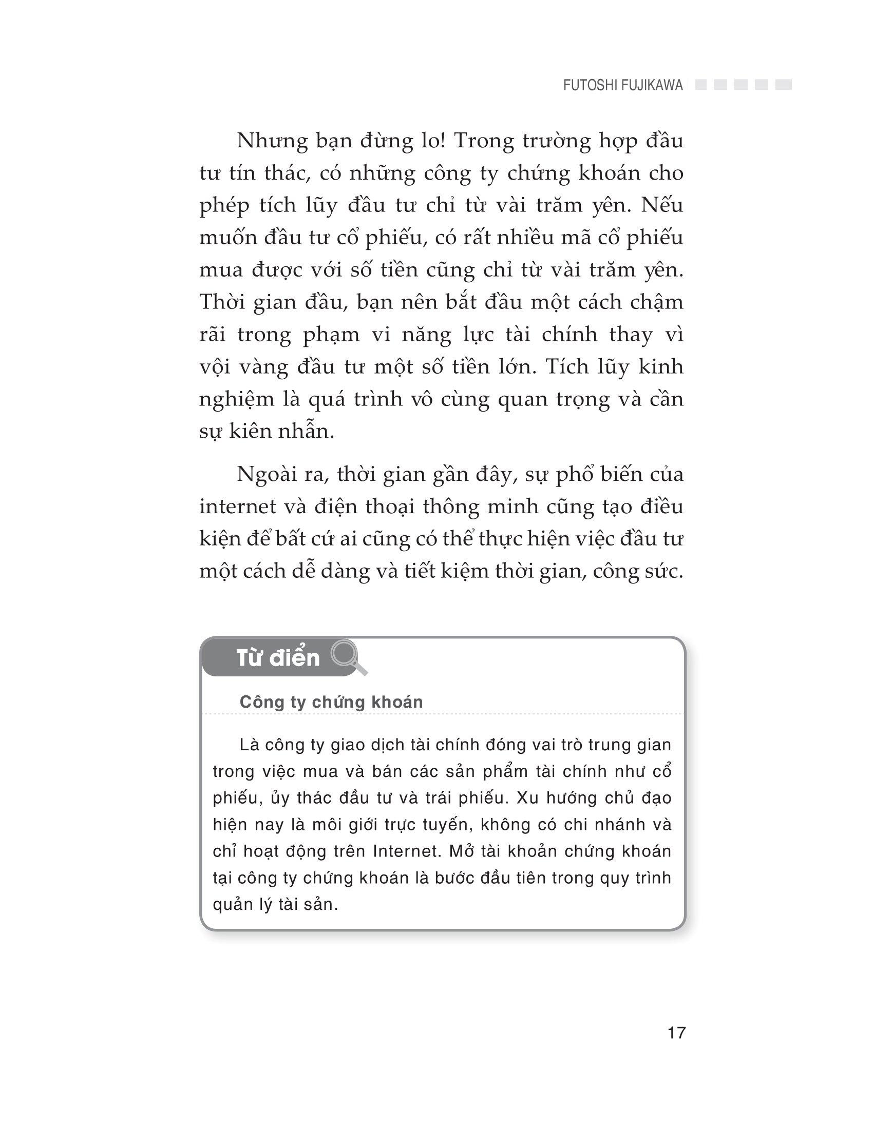 Tác giả Futoshi Fujikawa cũng sẽ giới thiệu một loạt các phương thức hoạt động từ kiến thức cơ bản về tiền tệ đến đầu tư trái phiếu, ủy thác đầu tư, cổ phiếu và ngoại tệ.
