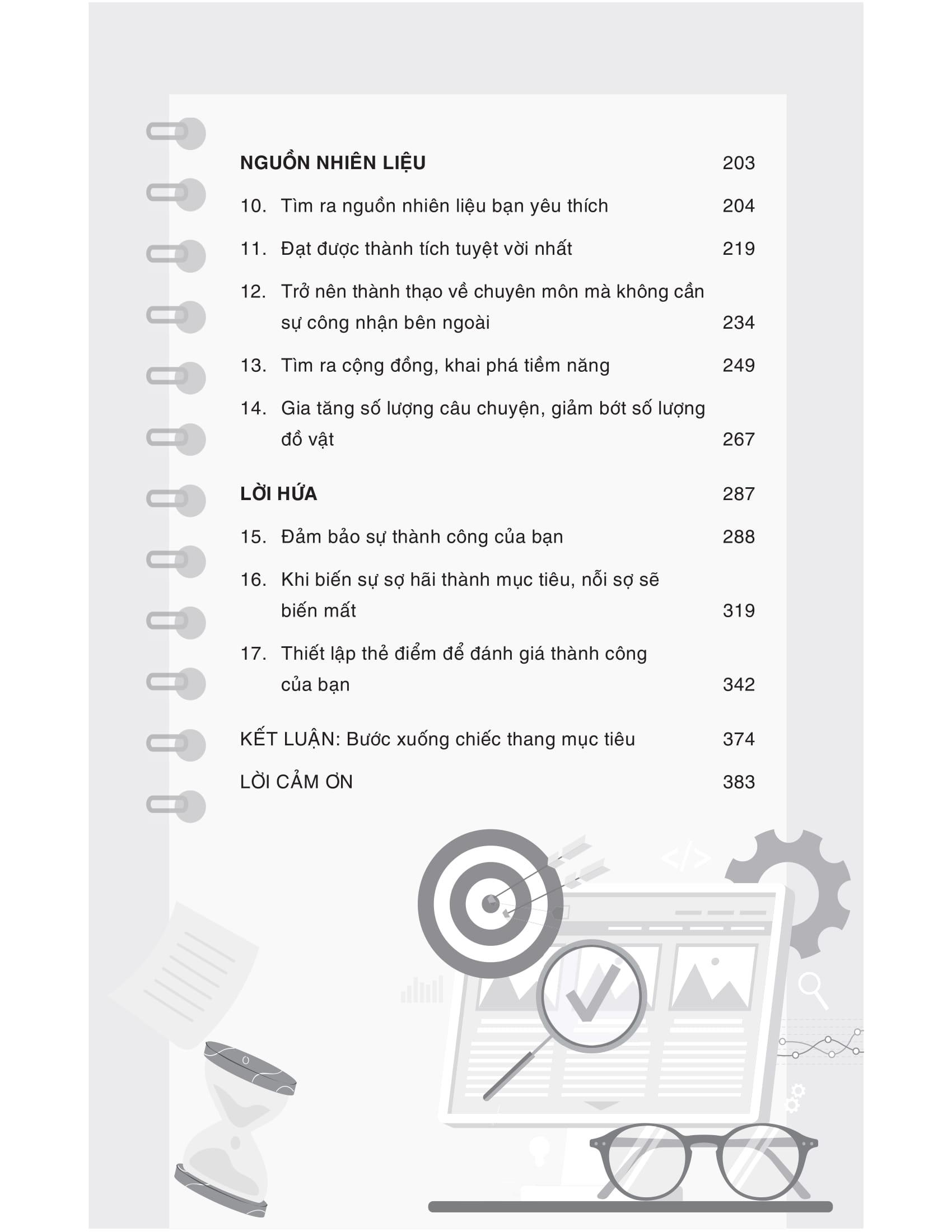 Với ba cấp độ mục tiêu (mục tiêu dễ dàng, mục tiêu trung bình và mục tiêu đảm bảo sẽ đạt được), tác giả vạch ra một con đường rõ ràng để ta kéo bản thân m.ình ra khỏi Vùng thoải mái trì trệ, tránh xa Vùng hỗn loạn luôn căng thẳng, để có thể tận hưởng những khoảnh khắc tuyệt vời trong Vùng tiềm năng.