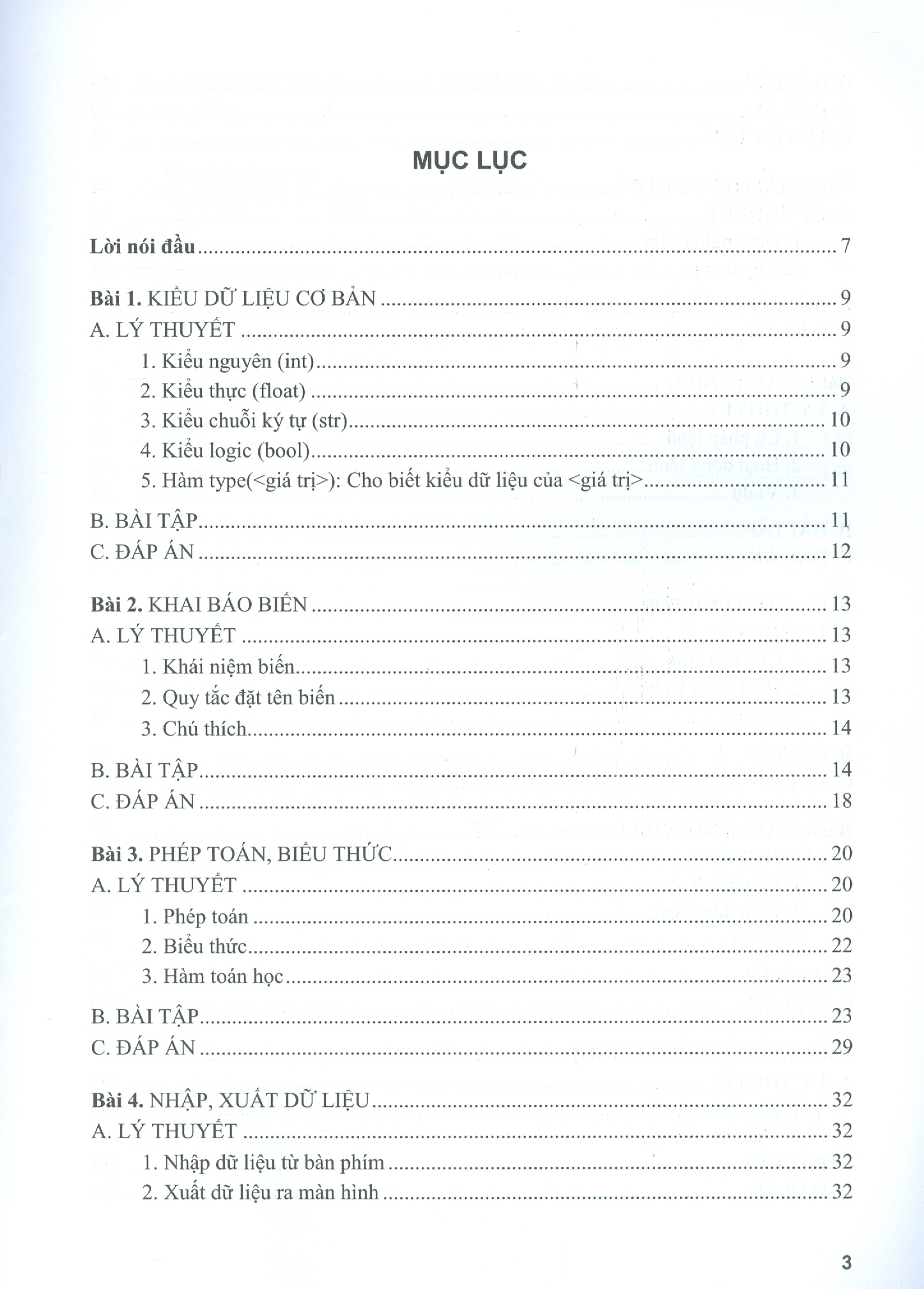 Gồm 15 bài học và 2 dự án thực hành. + Bài 1: Cài đặt môi trường phát triển + Bài 2: Ngôn ngữ lập trình Python + Bài 3: Biến và kiểu dự liệu