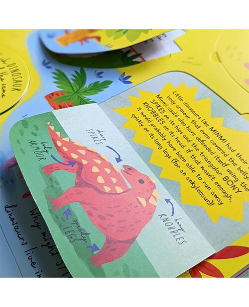 Large Question & Answer Flap Book -Dinosaurs Lift the flaps in this colourful book to take a journey back in time and learn about the weird and wonderful world of Dinosaurs, like which Dinosaurs ate