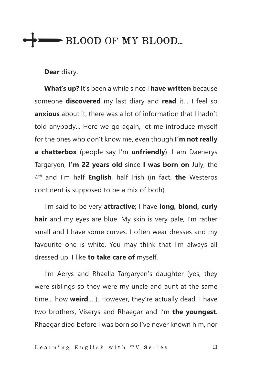 - Phần đầu là một trích đoạn trong TV series nổi tiếng được viết theo các đặc điểm ngữ pháp cùng với từ vựng và thành ngữ.