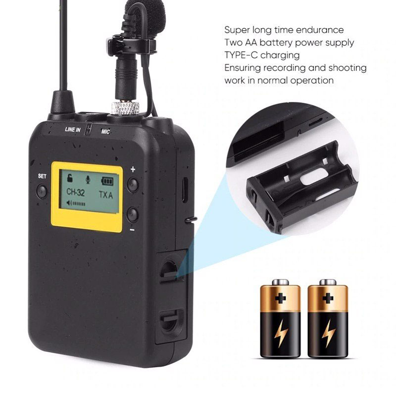 Hỗ trợ gắn thẻ nhớ TF mở rộng (tối đa 32GB) trực tiếp trên Transmitter, lưu trữ bản ghi thời gian thực, ngăn việc mất tiếng trong quá trình quay do mất sóng hoặc nhiễu tín hiệu.