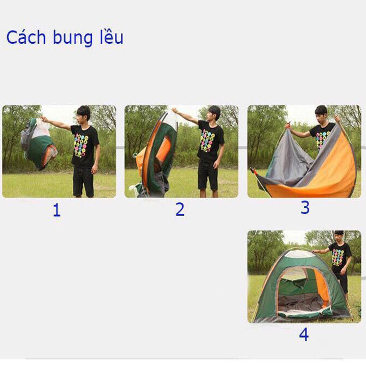 Lều cắm trại tự bung dành cho 3-5 người - chống thấm nước, chống nắng cực tốt, thông gió mát mẻ.