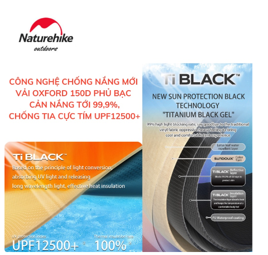 5.0 thế hệ 2 NatureHike lắp dựng nhanh và dễ dàng . Công nghệ chống nắng mới vải Oxford 150D phủ gel Titanium màu đen cản nắng tới 99,9%, chống tia cực tím UPF12500+. Lều tích hợp tăng che nắng có thể tháo rời hoặc mở rộng vô cùng đa năng và tiện dụng. Không gian lều cao và rộng rất thoáng mát sức chứa cho 2-4 người. Đây là mẫu lều vintage rất tiện dụng, sức chứa lớn và giá cả phù hợp sự lựa chọn hoàn hảo của gia đình đông người.