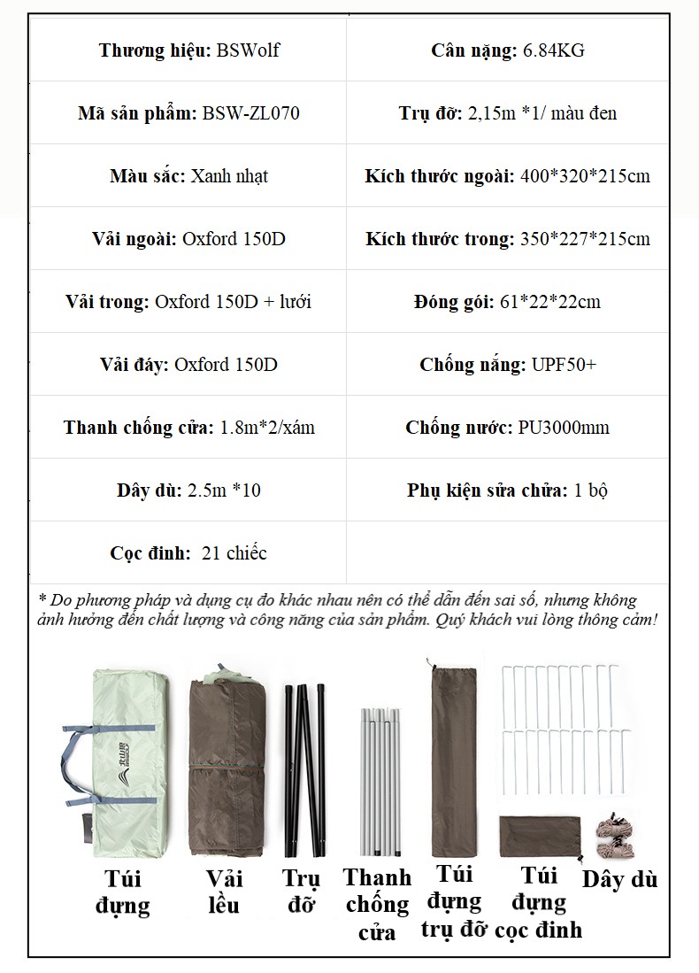 ✨Lều kim tự tháp có mái hiên BSW-ZL070 (400*320*215cm)