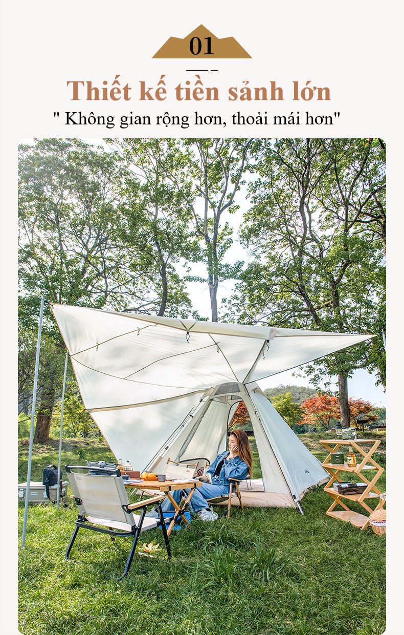 Giới Thiệu Về Sản Phẩm: - Vải lều chống nước cực tốt giúp bạn không bị ướt bởi cơn mưa, sương mù và bảo vệ bạn khỏi côn trùng cắn. Khung lều làm từ sợi