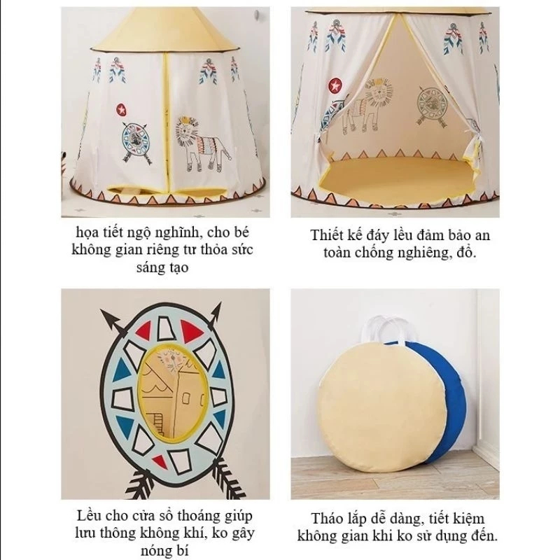 • Lều thổ dân, với thiết kế thông minh chỉ vài thao gác nhỏ bạn có thể tặng cho bé một món quà đặc biệt.