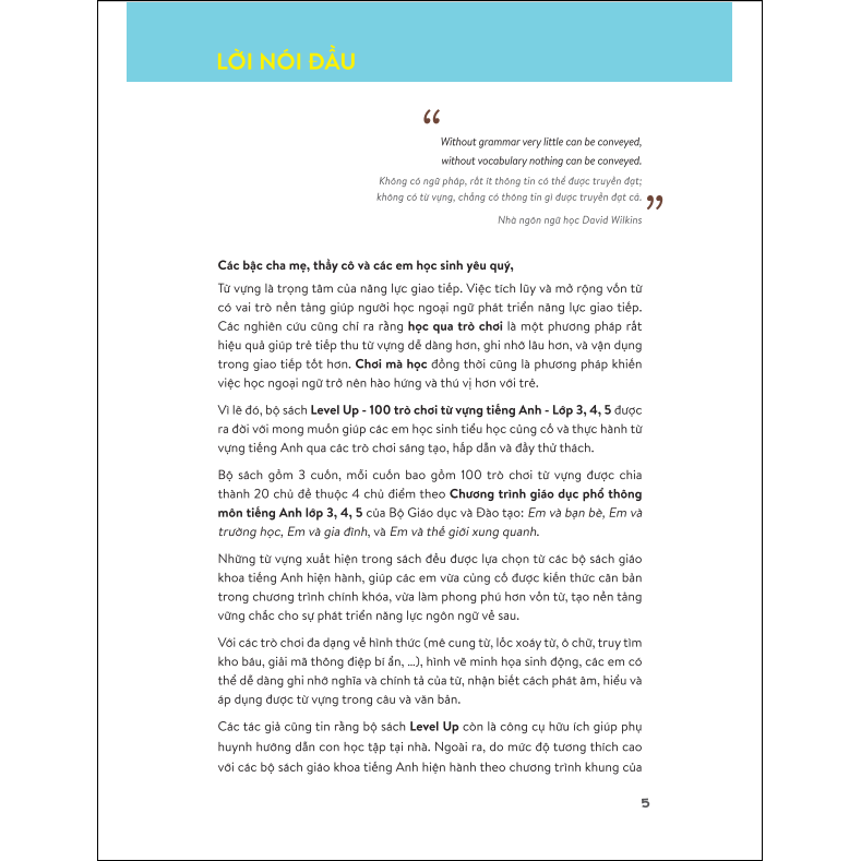 Level Up – 100 trò chơi từ vựng tiếng Anh vì thế được kì vọng có thể giúp các em hoàn thành nhiệm vụ học từ vựng “khó nhằn” theo một cách vui vẻ, hứng khởi và vô cùng hiệu quả: