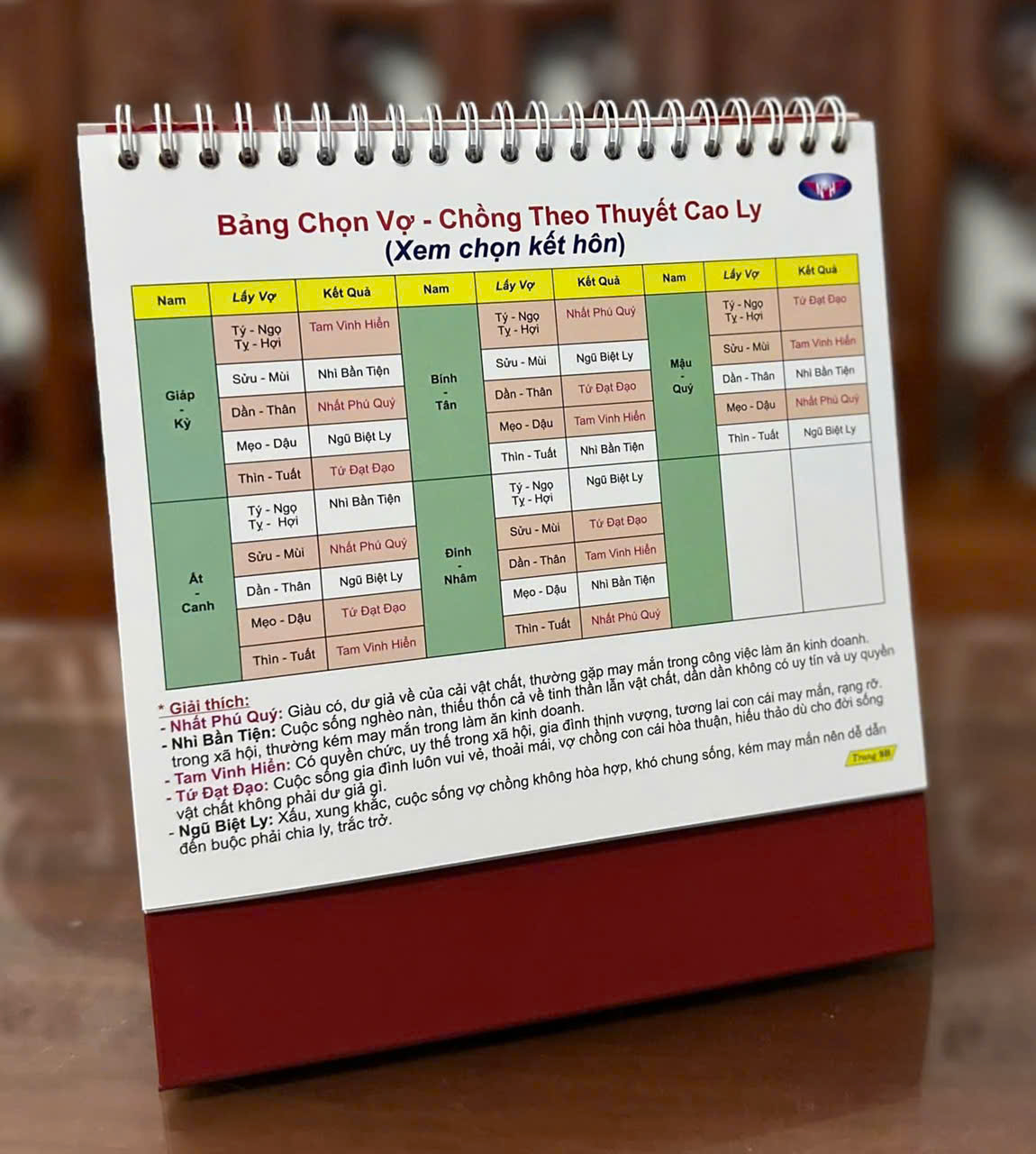 Lịch bàn khổ 19x17 (cm), gồm 26 trang (in 2 mặt) có đầy đủ thông tin về ngày âm - dương , giúp chọn được ngày tốt, hạn chế ngày xấu, ...