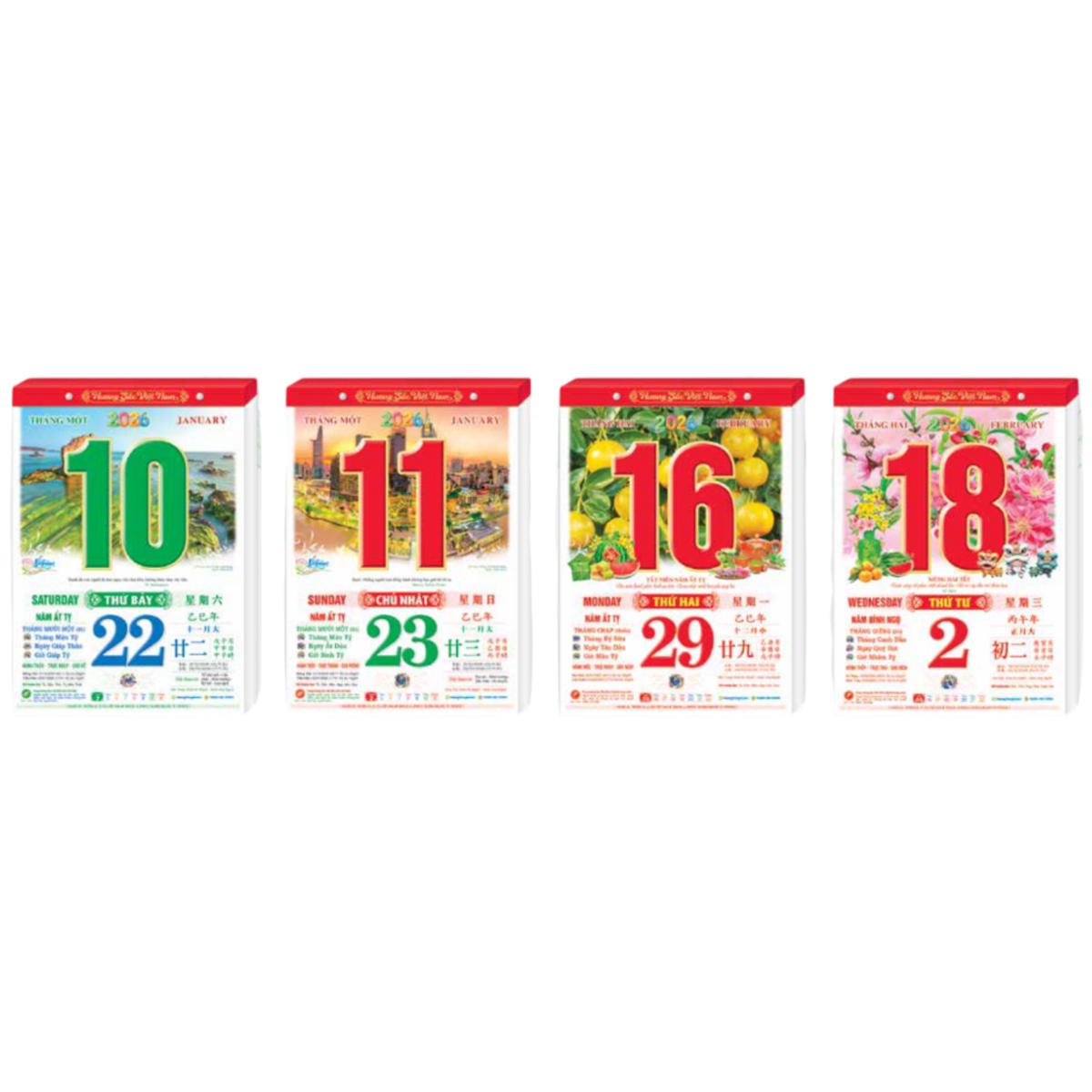 - Quyển Bloc lịch 2026 dùng gắn vào các loại bìa lịch treo tường, thay thế Bloc năm cũ. * QUY CÁCH BLOC LỊCH: - Chất lượng in công nghệ hiện đại, sắc nét, in