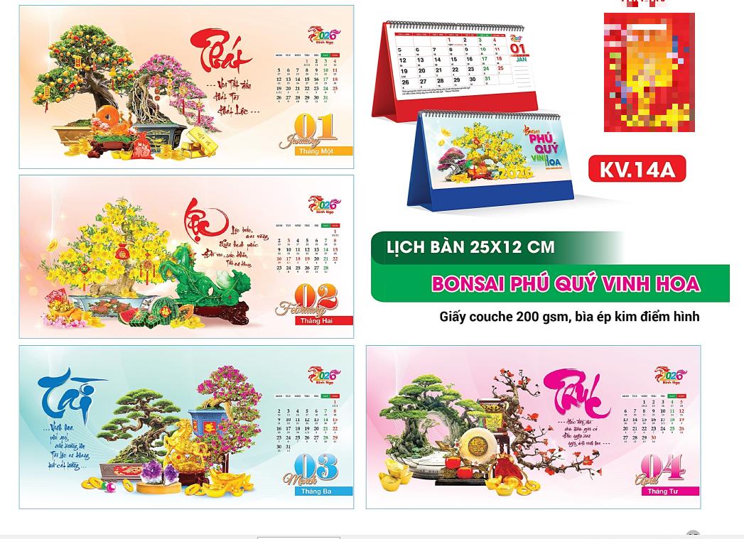 Giá in lịch treo tường, lịch chữ A, lịch để bàn Xưởng in lịch tết 2026-In Lịch Tết Giá Rẻ TPHCM