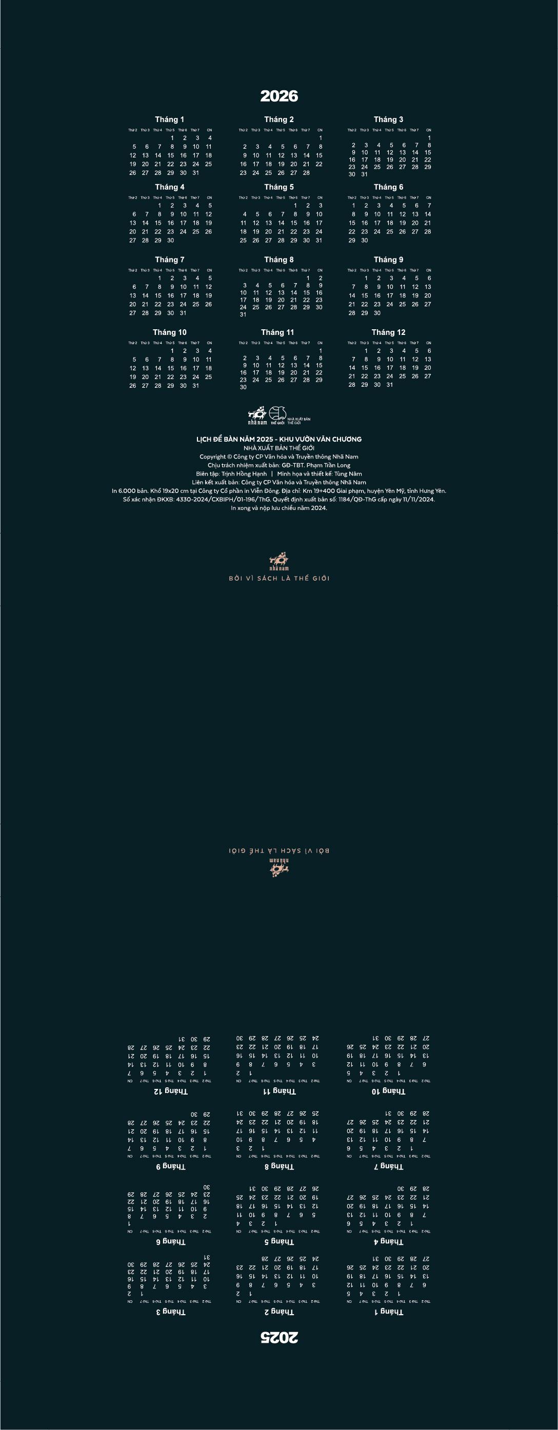 Concept lịch năm 2025: Khu Vườn Văn Chương. Các trang lịch được lấy ý tưởng từ các tác phẩm văn học do Nhã Nam Phát Hành.
