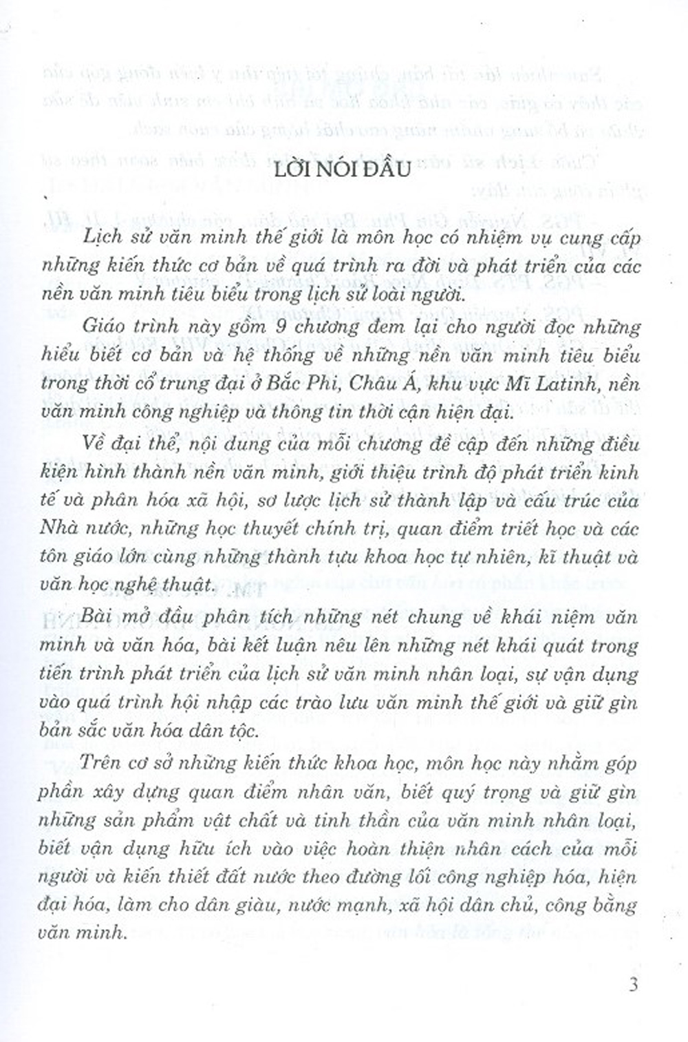 Mua tại TiktokNội dung của mỗi chương đề cập đến những điều kiện hình thành nền văn minh, giới thiệu trình độ phát triển kinh tế và phân hoá xã hội, sơ lược lịch sử thành lập và phân hoá xã hội, sơ lược lịch sử thành lập và cấu trúc của nhà nước, những học thuyết chính trị, quan điểm triết học và các tôn giáo lớn cùng những thành tựu khoa học tự nhiên, kỹ thuật và văn học nghệ thuật.
