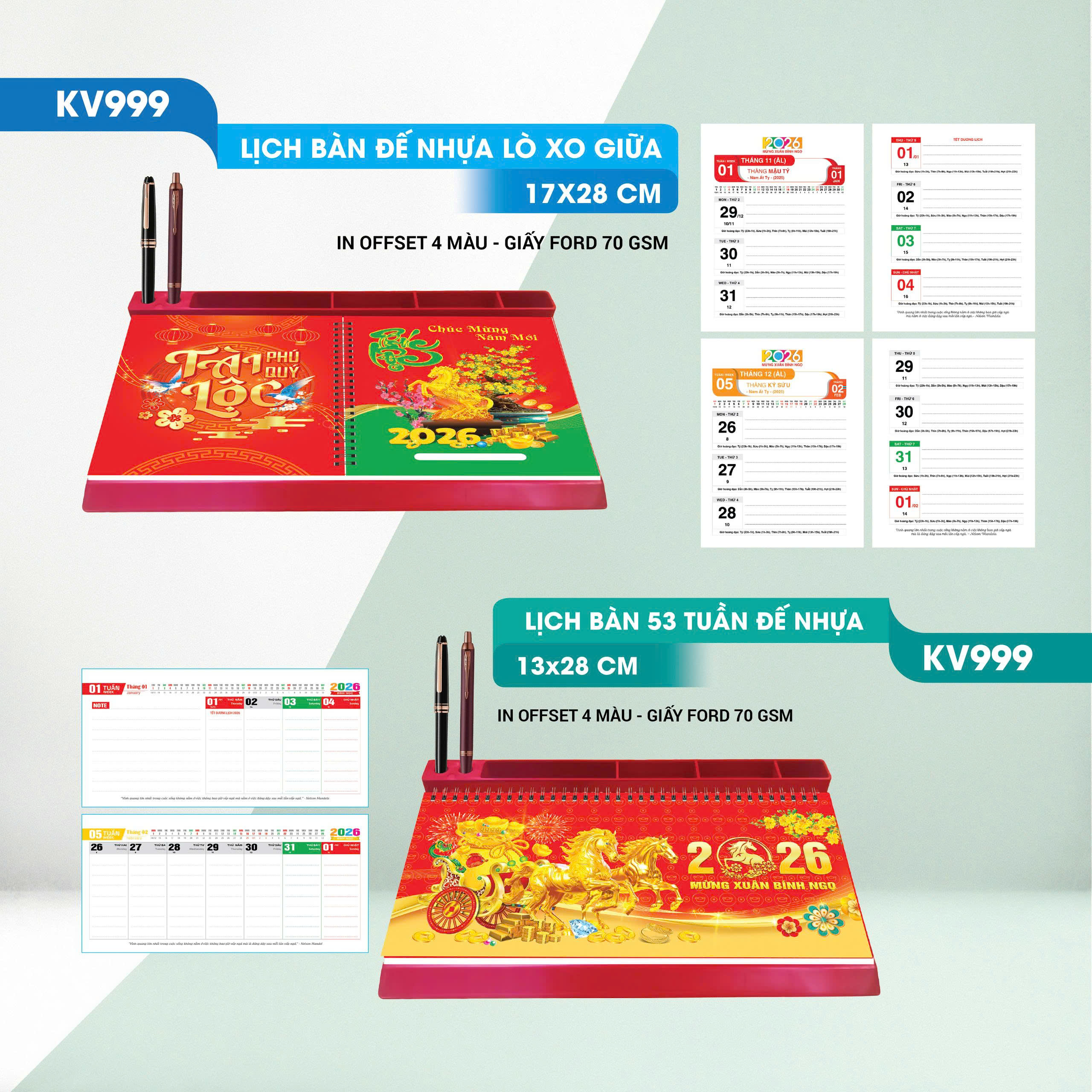 Lịch Tết 2026 - Lịch Bàn Đế Nhựa Lò Xo Giữa (17 x 28) Lịch Tết, hay còn gọi là lịch Âm lịch, là một phần không thể thiếu trong văn hóa Việt Nam, đánh