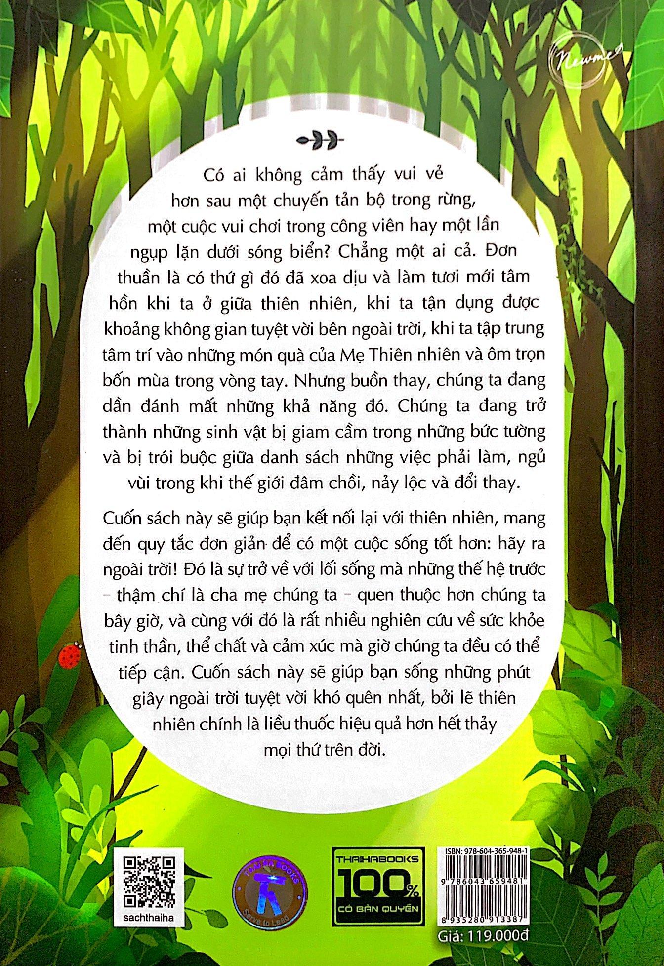 Đầu tiên, cuốn sách chia sẻ lý do trở về với thiên nhiên cực kỳ quan trọng đối với sức khỏe và hướng dẫn những bài tập thú vị và đơn giản, bao gồm các bước rất thực tiễn, trở thành nguồn cảm hứng khai thác sức mạnh phục hồi của thiên nhiên, bất kể mùa hay thời tiết. Các chương đề cập đến các ý tưởng thực hành cho cả bốn mùa, cũng như cách sử dụng trải nghiệm trong tự nhiên để làm sâu sắc thêm các mối quan hệ xung quanh. Các ý tưởng và chiến lược sáng tạo của tác giả bao gồm từ việc đi bộ đơn giản trong rừng và trị liệu cho các cặp đôi ở vùng nông thôn đến các sản phẩm làm đẹp tự nhiên tự làm và những cách đơn giản để mang không gian ngoài trời tuyệt vời vào nhà. Cuốn sách bao gồm các hình minh họa đen trắng.