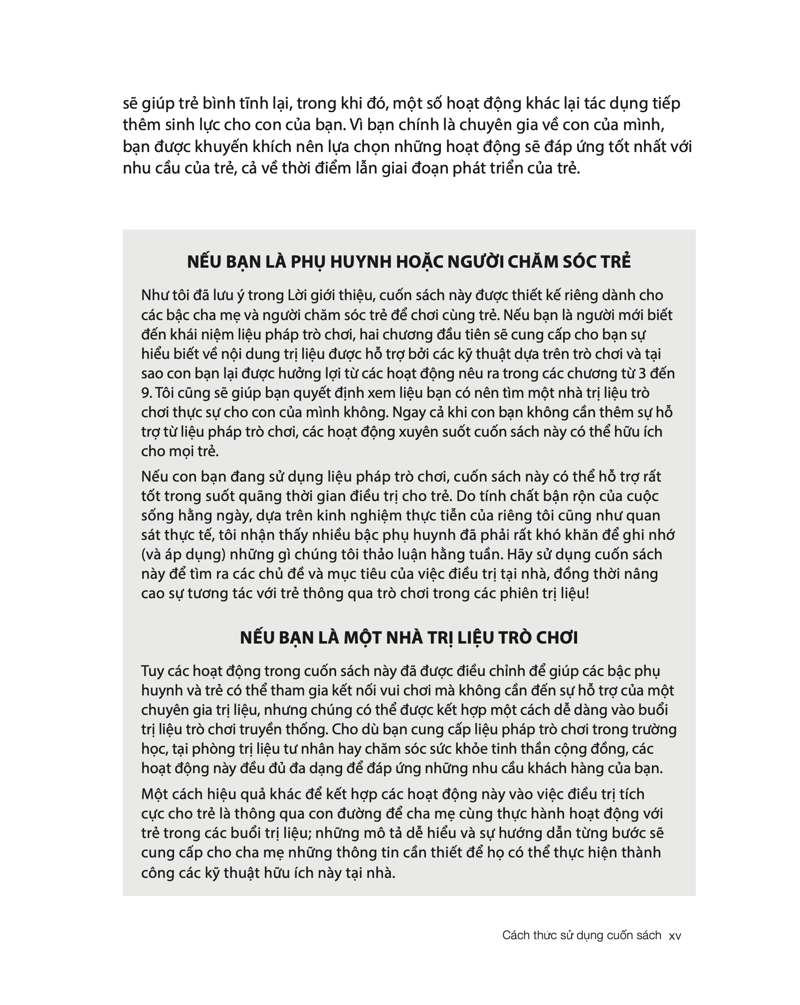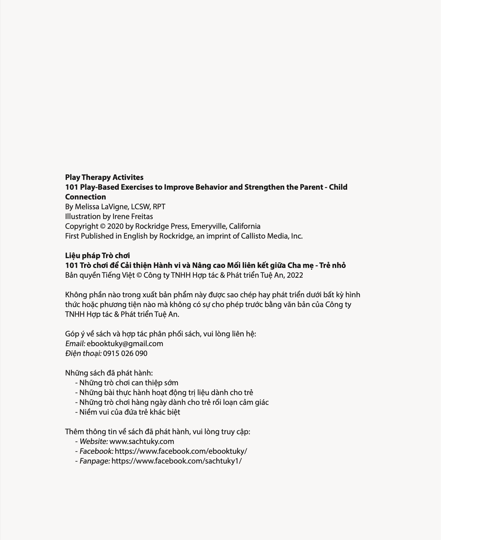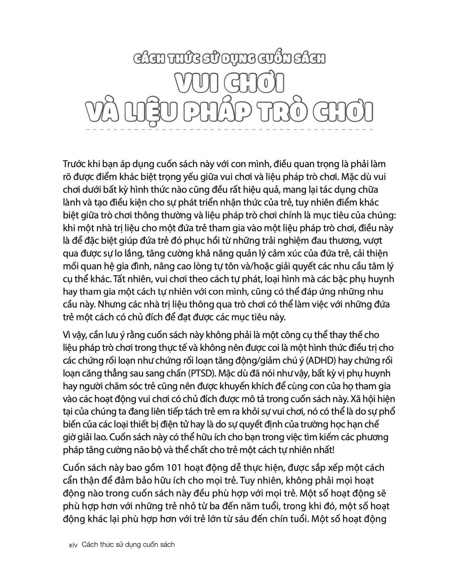Từ việc giúp củng cố mối quan hệ của bạn và con cho đến việc giảm thiểu sự phụ thuộc của trẻ vào thiết bị điện tử, cuốn sách Liệu pháp trò chơi mang đến nhiều trò tuy đơn giản nhưng giúp cải thiện hành vi, nâng cao khả năng kiểm soát xung động và nhận thức bản thân của trẻ. Bạn mới biết về khái niệm liệu pháp trò chơi? Cuốn sách đơn giản, dễ hiểu dành cho phụ huynh này sẽ cung cấp một cái nhìn toàn diện về thực hành, cùng với những lời khuyên để đảm bảo rằng bạn và trẻ có những giây phút trải nghiệm tuyệt vời bên nhau.