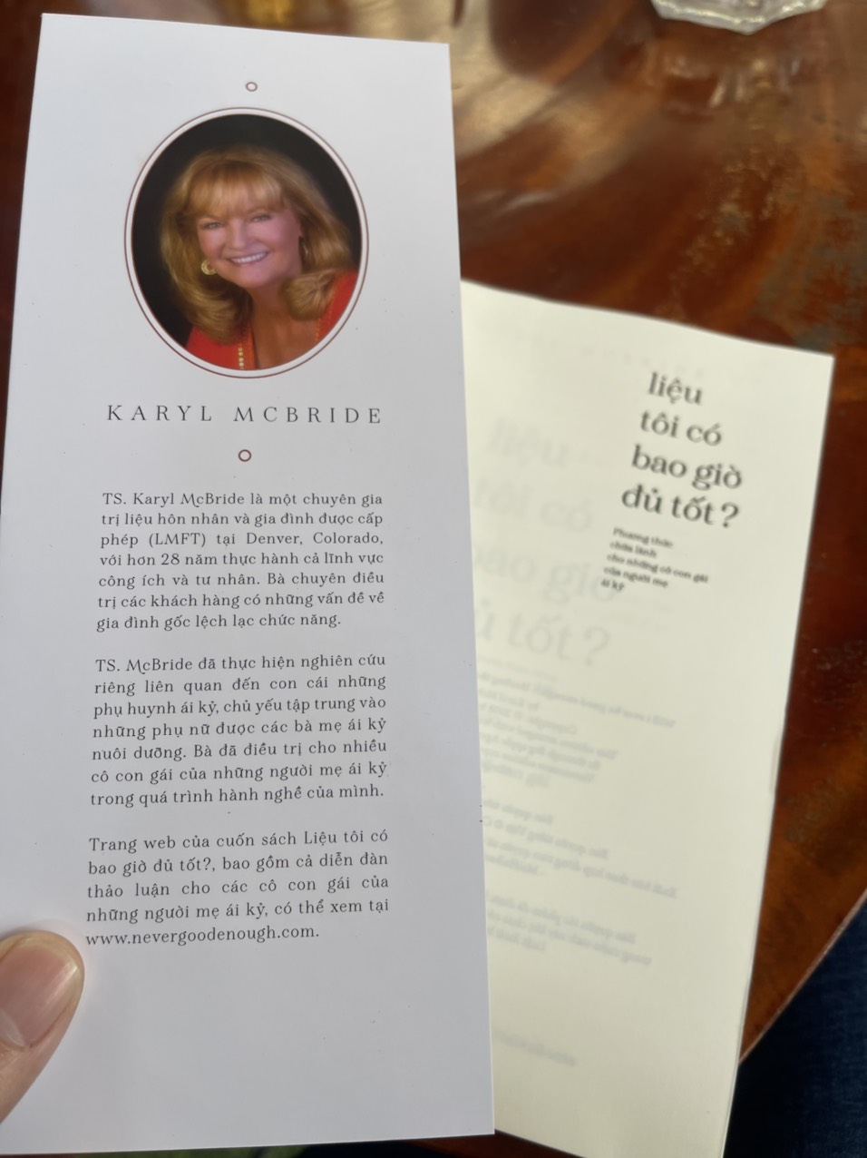 “TS. McBride đã thực hiện một công việc tuyệt vời là thấu hiểu được nỗi đau khổ của những người phụ nữ lớn lên bên cạnh người mẹ ái kỷ. Cuốn sách hướng dẫn phụ nữ thoát khỏi cái bẫy đi tìm kiếm sự chấp nhận để chứng tỏ giá trị bản thân một cách dễ dàng và hữu hiệu hơn bao giờ hết. Với văn phòng mạch lạc, tác giả giúp người đọc xác định rõ những biểu hiện tinh vi của chứng ái kỷ. Và, thông qua các ví dụ, chứng minh những đặc điểm này ở một người mẹ có thể định hình tính cách, cách nhìn của một cô con gái về bản thân, thế giới và các mối quan hệ xung quanh mình như thế nào. TS. McBride thực sự cần được ngợi khen vì những đóng góp độc đáo của bà cho hiểu biết của chúng ta về những động năng rối rắm trong mối quan hệ tình cảm thân thiết nhất của mỗi cá nhân,mối quan hệ gia đình.”