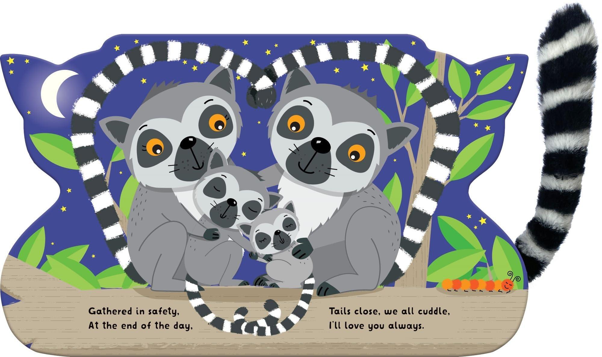 This die-cut book in the shape of a lemur with tactile furry tail will t little readers!