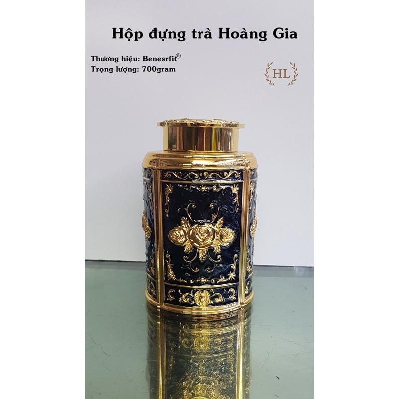 Hộp trà HADU hợp kim kẽm Hoàng Gia hoa văn thủ công tinh xảo có nắp đậy kín khít an toàn HDS025