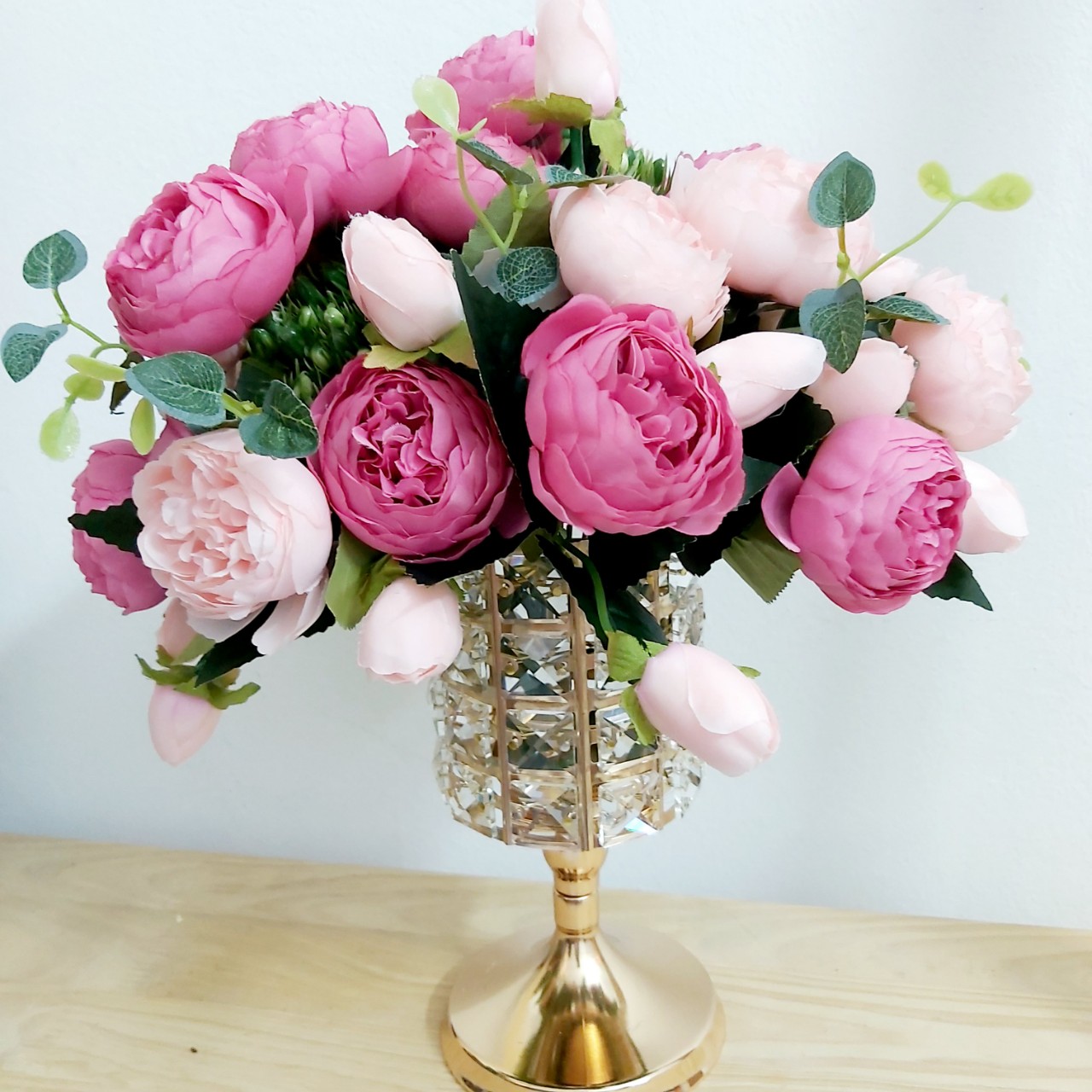 ✨Lọ hoa mẫu đơn lụa cao cấp thiết kế gắn đá pha lê kiểu dáng sang trọng trang trí phòng khách, tiệc cưới, sự kiện AZ-05