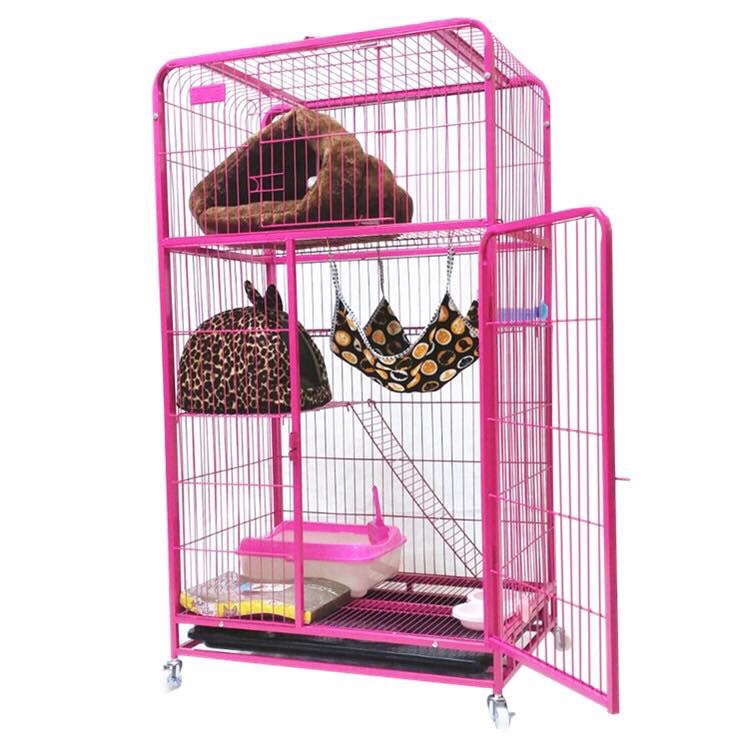 Đặc điểm :lồng có 3 tầng cho mèo tha hồ leo trèo, không gian rộng rãi đùa nghịch Đáy chuồng có thể kéo ra vào, có khay vệ sinh và bánh xe di động tiện