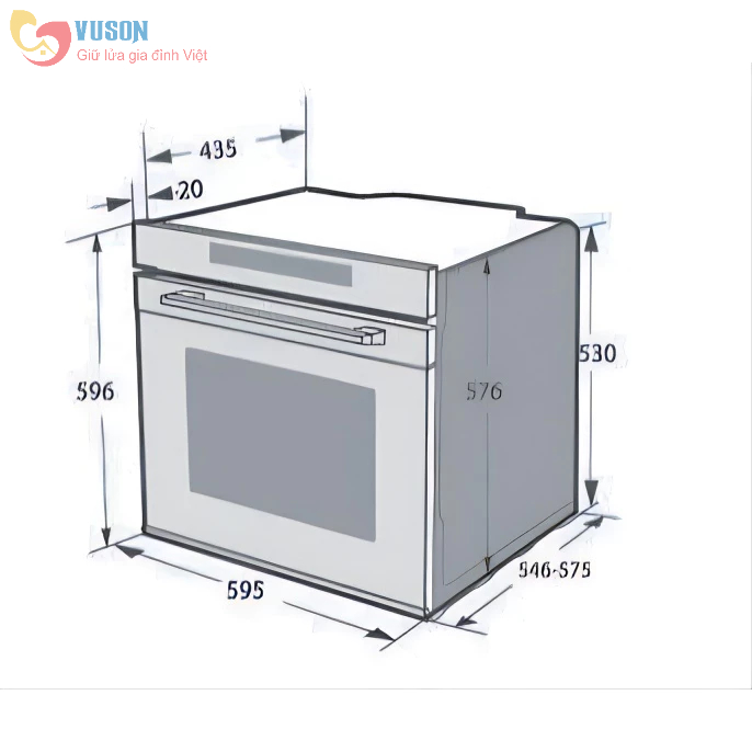 Lò nướng/hấp âm tủ 9 chức năng Màn hình hiển thị LED Hệ thống quạt tự làm mát lò Chế độ hẹn giờ nướng/hấp Khóa an toàn trẻ em Tiết kiệm điện năng Dung tích:
