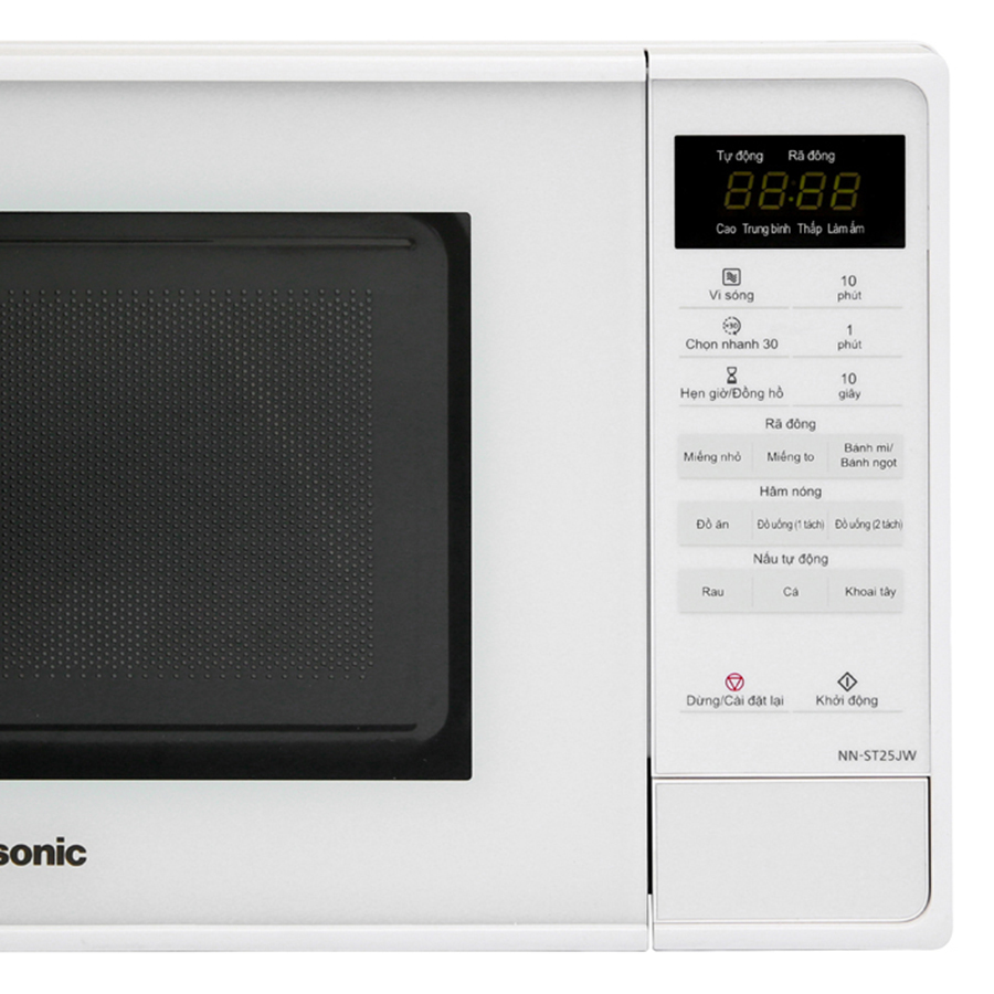 Lò vi sóng Panasonic NN-ST25JWYUE 20 lít kích thước nhỏ gọn, màu sắc trang nhã phù hợp với mọi không gian bếp Dung tích 20 lít có thể bỏ vừa gà nguyên con khoảng 1 kg Lò vi sóng đa