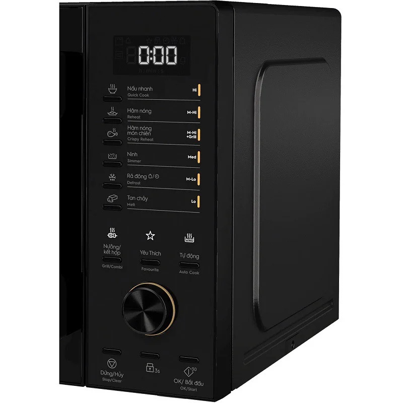 NỔI BẬT 5 cấp độ năng lượng vi sóng. 3 chương trình kết hợp tự động, 2 chương trình rã đông. Dung tích: 25 lít. Điều khiển bằng nút bấm và màn hình