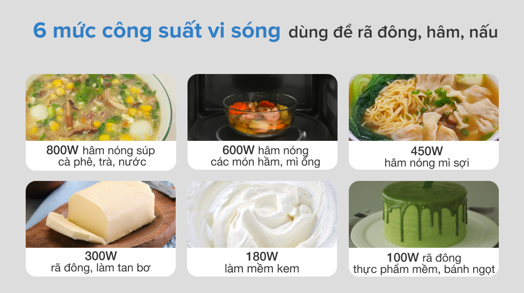 Đặc điểm nổi bật Ngoại hình thời thượng, sang trọng với kích thước nhỏ gọn Công suất lò lên đến 800W giúp hâm nóng thức ăn nhanh hơn Rã đông thực phẩm nhanh chóng với