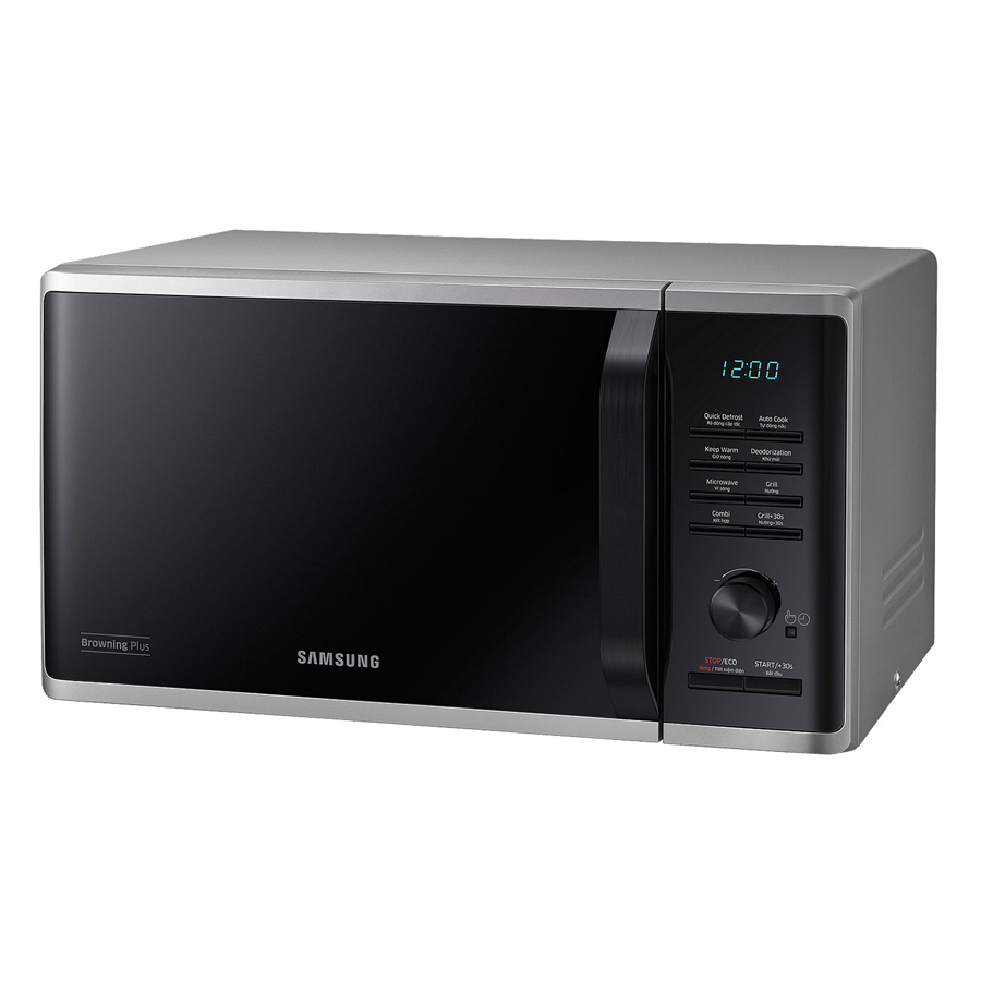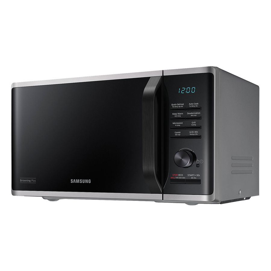 Lò Vi Sóng Tráng Men Có Nướng Samsung MG23K3515AS/SV (23 lít) có thiết kế sang trọng với tông màu đen xám tinh tế, góp phần tô điểm không gian bếp của bạn thêm phần hiện đại. Sản phẩm được trang bị dung tích 23 lít, đáp ứng vừa đủ nhu cầu chế biến món ăn cho gia đình đông người.