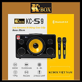 Loa Karaoke KCBOX S9 - Kcbox Việt Nam   Model: Kcbox s9 Hãng: Kcbox. Công suất PMPO: 600W. Bảo hành: 12 tháng.   Loa Kcbox S9 - Kèm 2 micro UHF - Siêu Phẩm 2023 Loa KCBOX S9 ra mắt cuối năm 2022 với mục tiêu là dòng loa xu hướng năm 2023 với cải tiến về mẫu mã và công suất . Kcbox S9 có thiết kế hoàn toàn mới vô cùng mạnh mẽ và nam tính ngầu lòi , toàn bộ thân loa được làm từ chất liệu gỗ bọc da sang trọng. Loa KCBOX S9 trang bị cấu hình loa mạnh mẽ với công suất PMPO 600W với Pin 15.000 mAh và hệ thống 5 loa + 3 đường tiếng, với loa Bass sup 25cm, cho chất âm mạnh mẽ.       Thông số kỹ thuật: Loa karaoke kiểu dáng xách tay nhỏ gọn, thuận tiện mang đi khắp nơi Thiết kế thùng gỗ, bọc da toàn bộ thân loa với 2 màu sắc lựa chọn: Đen, xanh Loa di động karaoke tích hợp Bass sup cho chất âm mạnh mẽ Thiết kế ấn tượng với hệ thống 5 loa, 3 đường tiếng với Bass sup 25cm Trang bị đầy đủ các hiệu ứng âm thanh Echo + Delay và không thể thiếu Reverb Trang bị tính năng Bass Boost cho mạnh mẽ cho sạc sôi động, EDM Đi kèm 2 micro không dây UHF cao cấp, karaoke nhẹ hơi, nâng giọng Dung lượng Pin mạnh mẽ, hoạt động liên tục từ 6 – 8h Đa dạng cổng kết nối, hổ trợ micro ngoài và nhạc cụ Guitar Tích hợp công nghệ Bluetooth 6.0 mới nhất, tín hiệu kết nối nhanh, ổn định     Thỏa thích kara với 2 micro UHF cao cấp Một chiếc loa karaoke hay, thì không thể thiếu một chiếc micro "xịn" giúp bạn thỏa thích thể hiện những ca khúc yêu thích của mình. Với loa xách tay KCBOX KC-S9, hãng KCBOX ưu ái trang bị 2 micro cao cấp, nhạy âm, chống hú cực tốt.