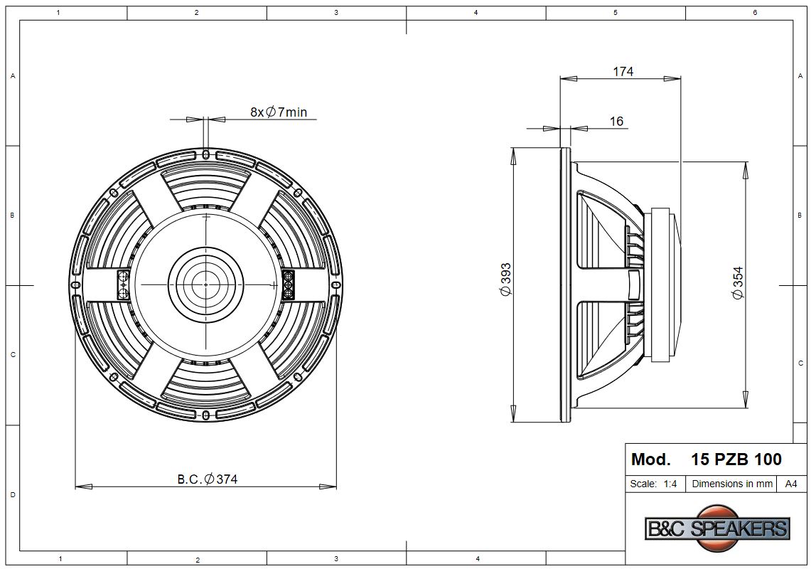 Mua tại TiktokLOA RỜI 4 TẤC B&C Xuất xứ : ITALIA Voice coil bằng đồng khổ lớn 4" (100mm) với chiều cao 21mm Công Suất Program 700-1400 W Dải tần: 40-2000 hz Độ nhạy: 97 db Nam châm Ferrite Mạng nhện đôi bằng silicone Voice coil loa B&C SPEAKERS 15PZB100 được thiết kế có độ thông thoáng nhất định giúp bảo vệ loa. Kích thước loa: 393 x 174 mm Đường kính bắt ốc: 374mm Khối lượng loa: 11.8 kg